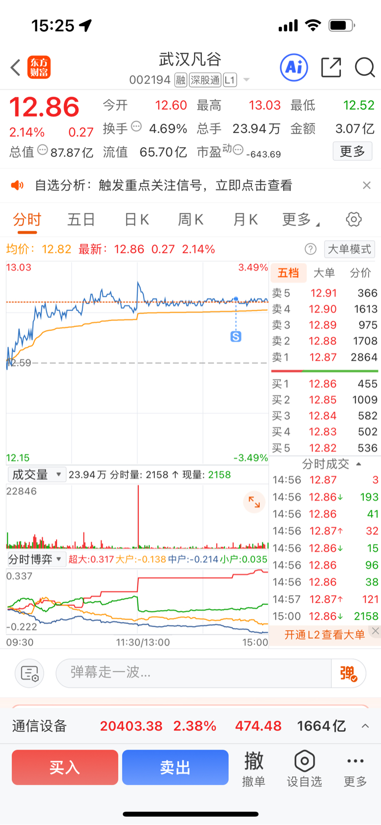 $武汉凡谷(SZ002194)$ 天天冲高回落,我先跑下来接你