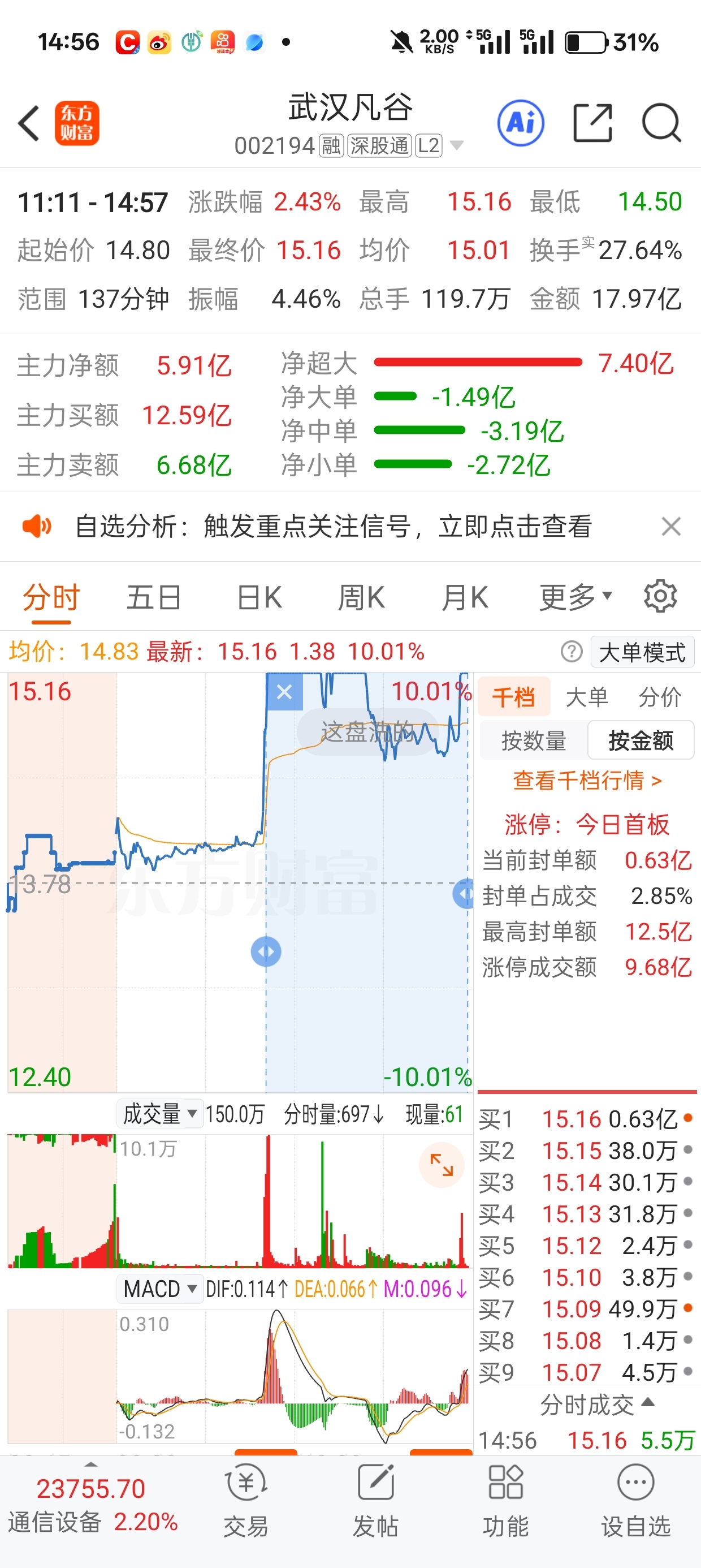 $武汉凡谷(SZ002194)$ 板上吃了这么多