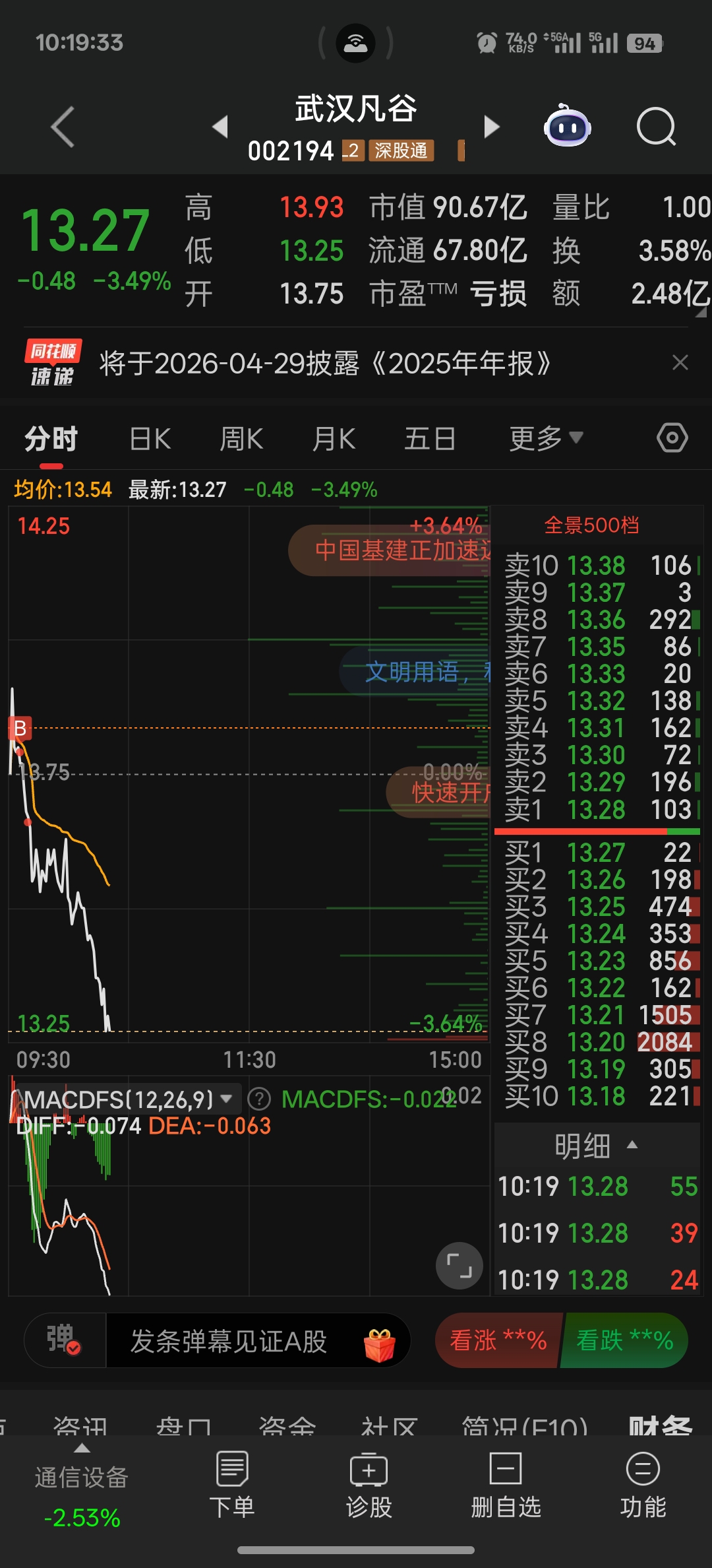 $武汉凡谷(SZ002194)$ 套牢了,弱股就是总是不断的给机会抄底,腊,几