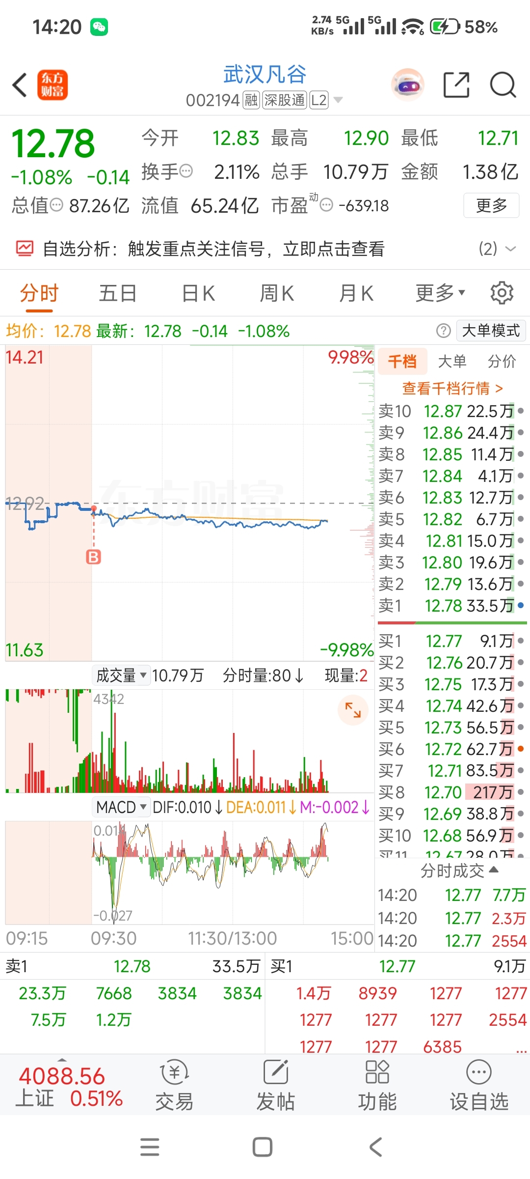 $武汉凡谷(SZ002194)$ 成功买在了最高点