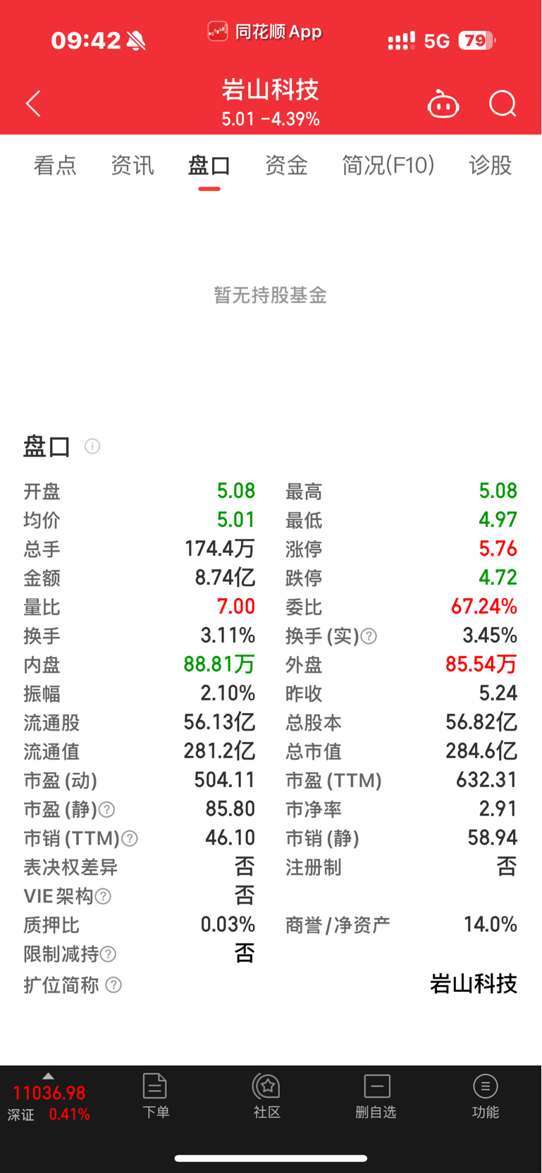 $岩山科技(SZ002195)$ 内外盘相差不大跌了五个点,想想为什么