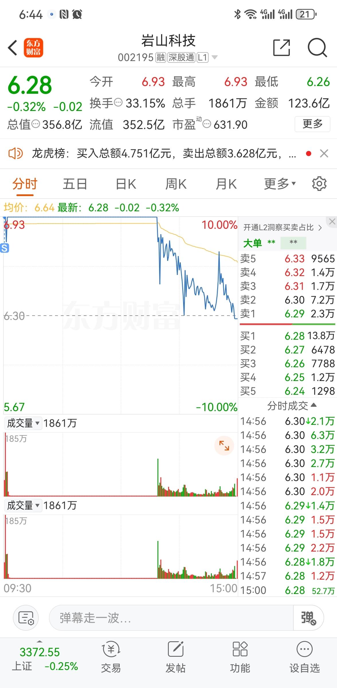 $岩山科技(SZ002195)$ 和我一起在拓维吃大面吧兄弟们 ,苦要一起吃