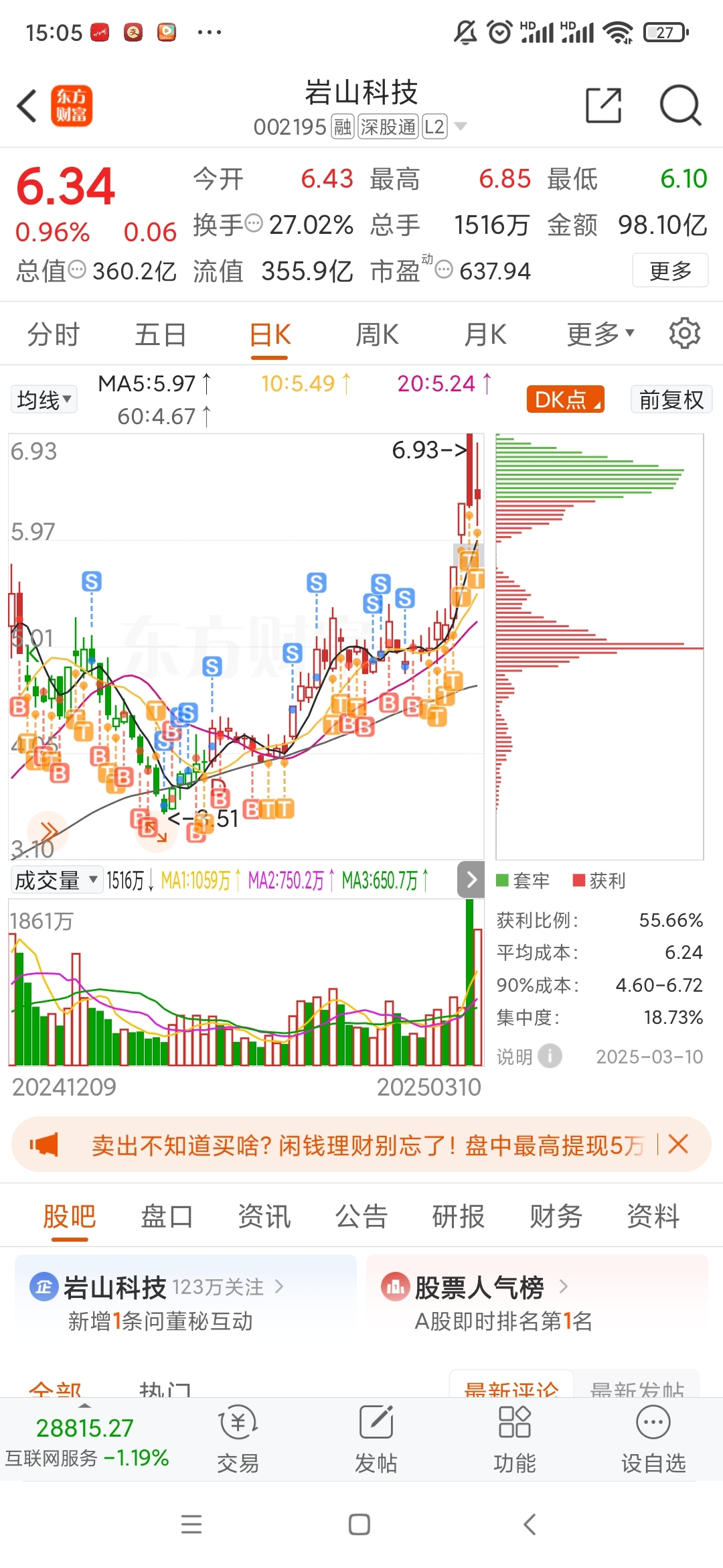 温馨提示: 1.根据《证券法》规定,禁止编造、传播虚假信息或者误导性信息,扰乱证券市场;2.用户在本社区发表的所有资料、言论等仅代表个人观点,与本网站立场无关,不对您构成任何投资建议。用户应基于自己的独立判断,自行决定证券投资并承担相应风险。《东方财富社区管理规定》