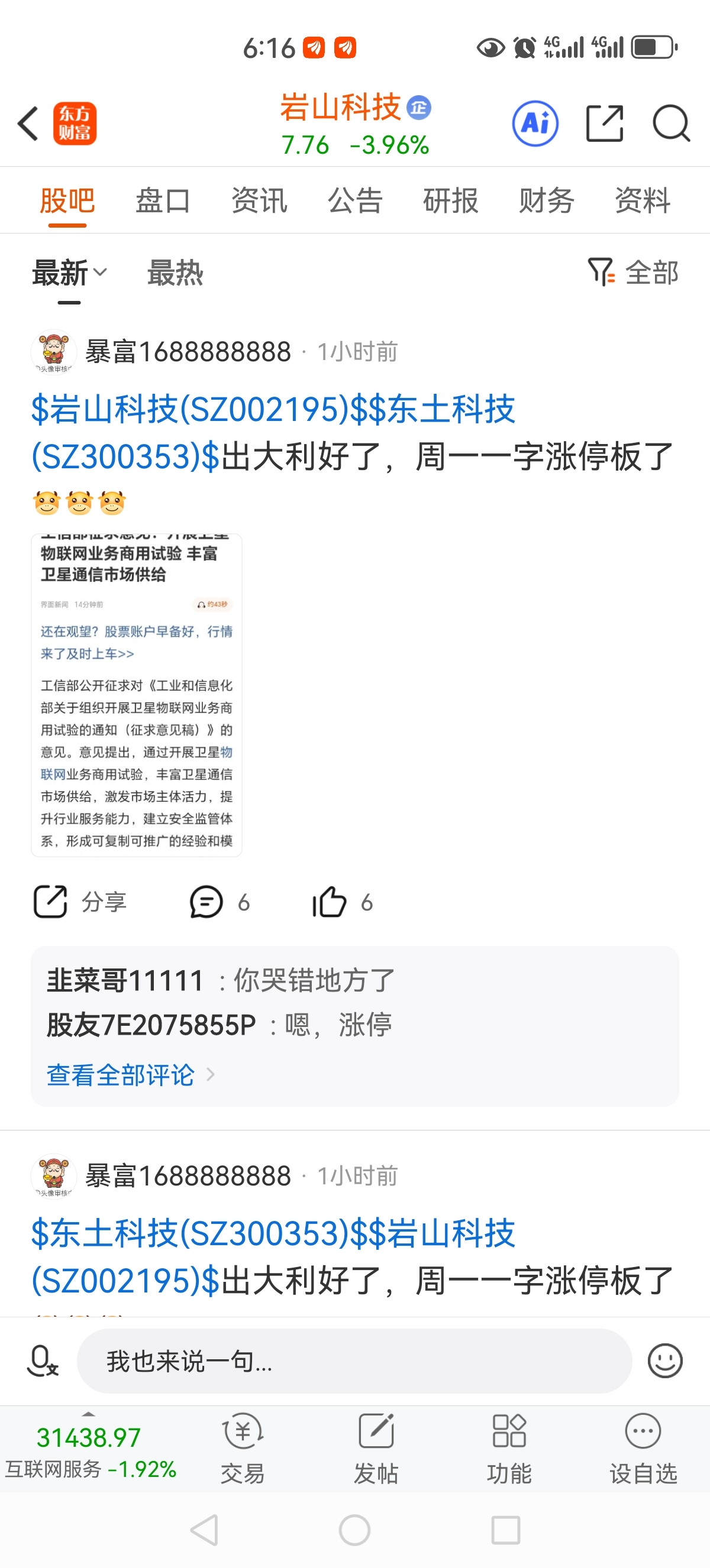 温馨提示: 1.根据《证券法》规定,禁止编造、传播虚假信息或者误导性信息,扰乱证券市场;2.用户在本社区发表的所有资料、言论等仅代表个人观点,与本网站立场无关,不对您构成任何投资建议。用户应基于自己的独立判断,自行决定证券投资并承担相应风险。《东方财富社区管理规定》