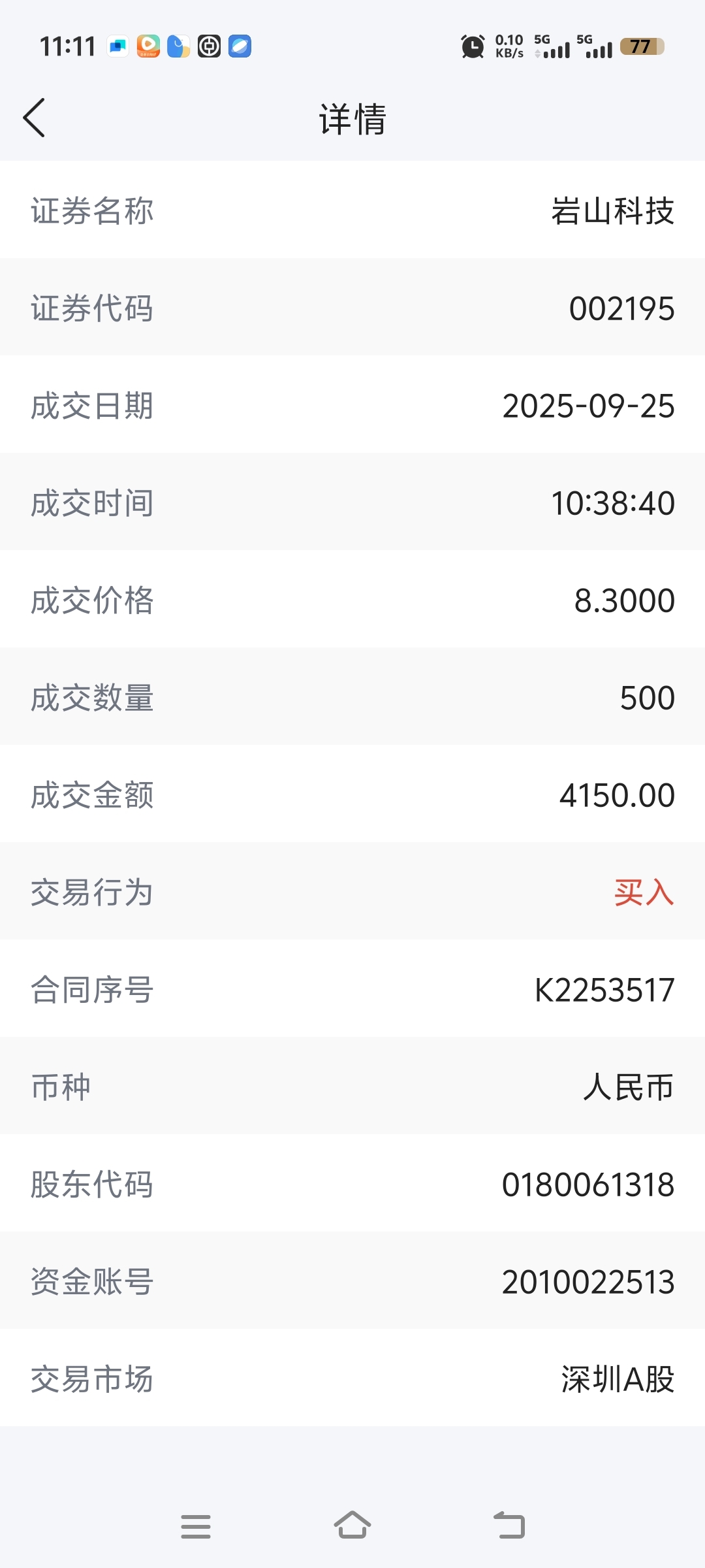 $岩山科技(SZ002195)$ 8.30的本还能回的去吗