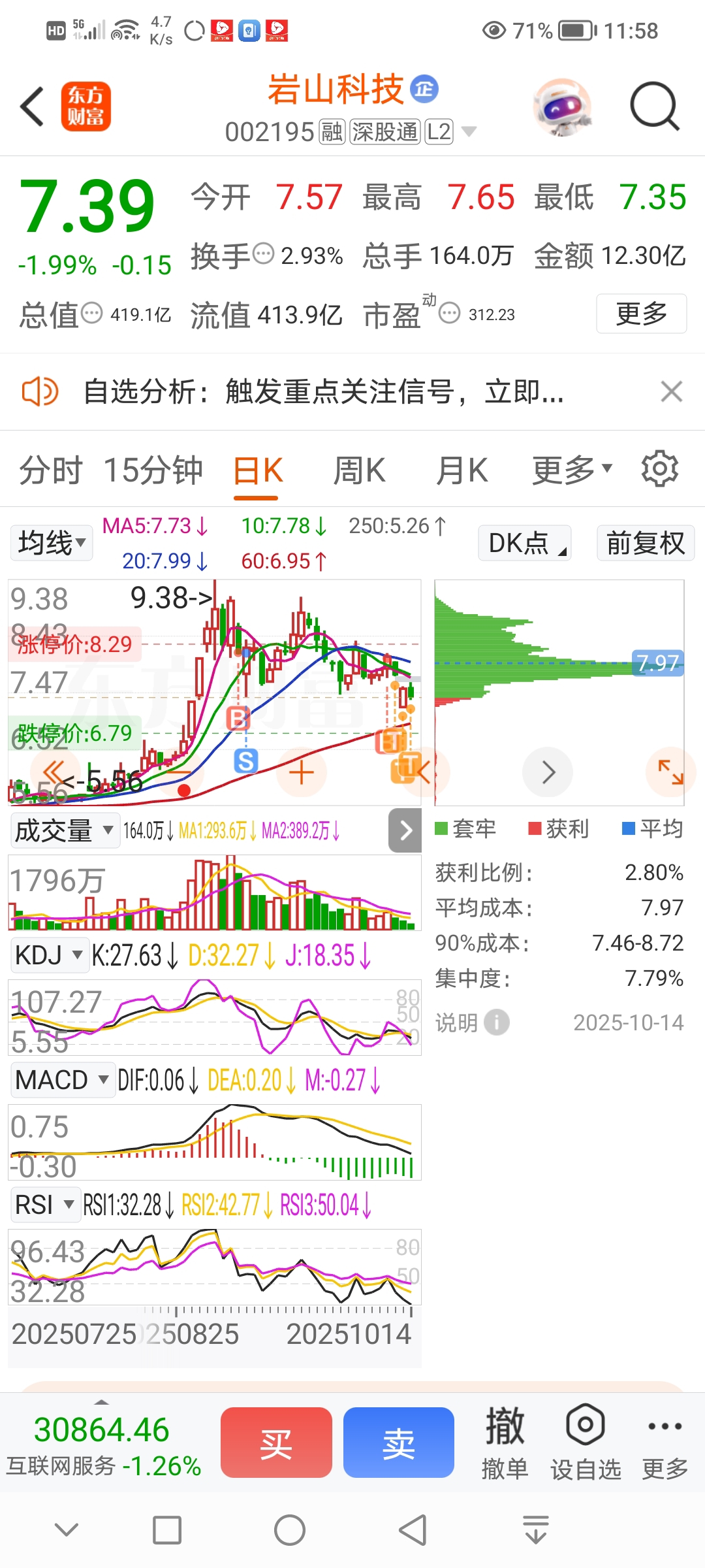 $岩山科技(SZ002195)$ 筹码绿油油一大片