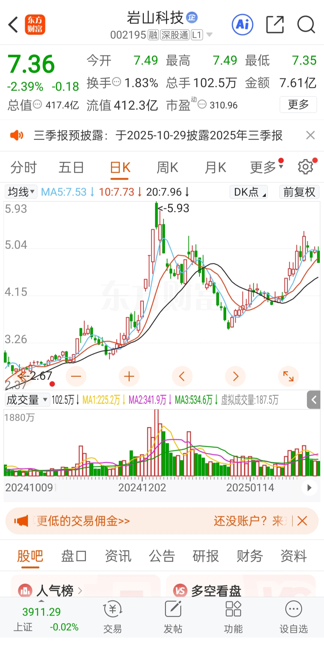 $岩山科技(SZ002195)$  相同的套路熟悉的配方,按照这个跌比,六元才能止跌