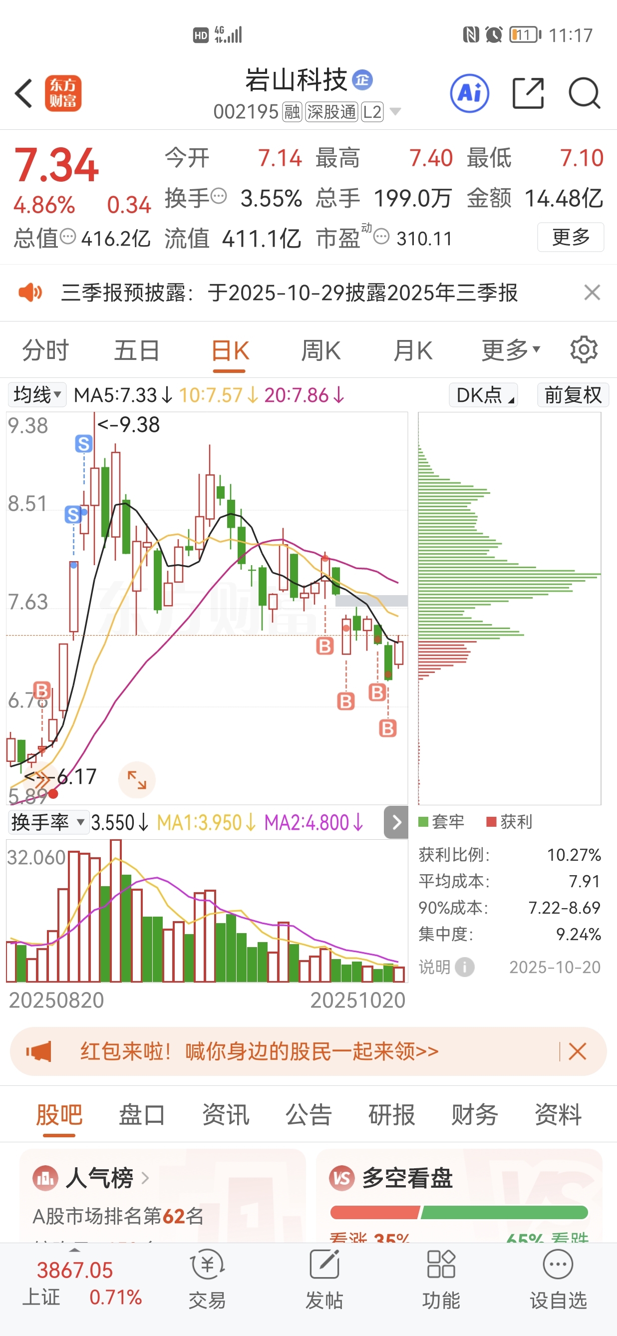 $岩山科技(SZ002195)$ 就是压着不让我回本吗