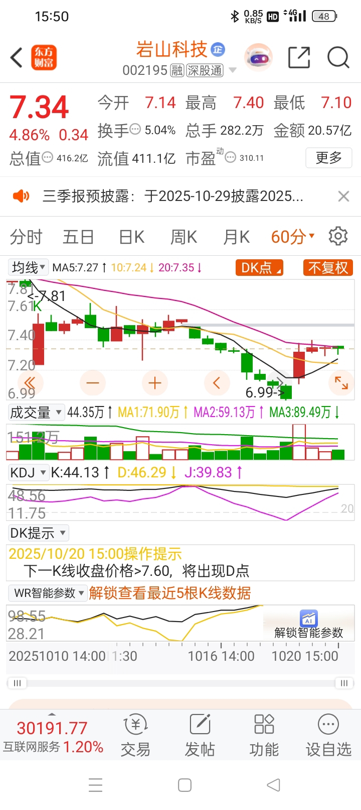 $岩山科技(SZ002195)$ 明天会补跌,冲60分钟线没带量且差一分。冲关没放量,无功而返。