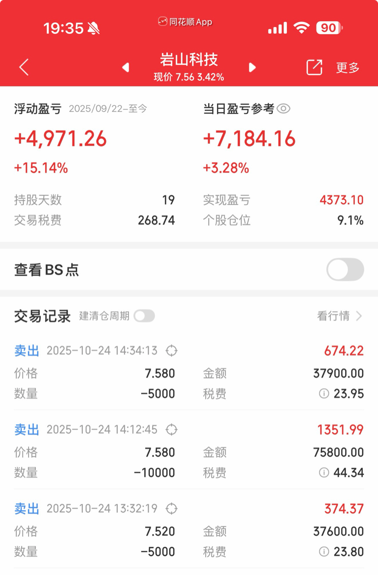 $岩山科技(SZ002195)$ 这次拿了19天,从亏2万到盈利很不错了,星期五减了二万仓,总觉得要卖飞,明天给机会就接回来,但我还是希望能高开高走。