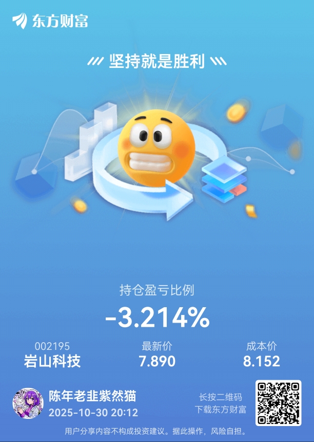 $岩山科技(SZ002195)$  呜呜呜,被套了