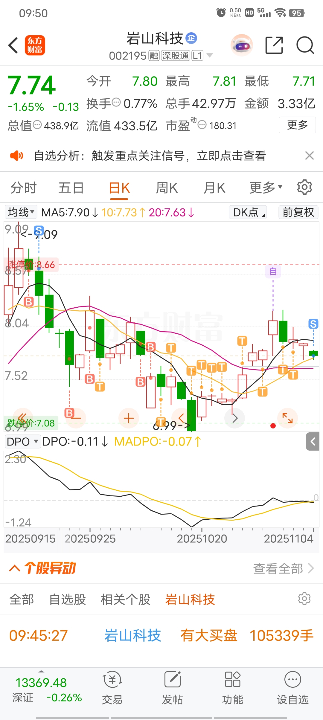 $岩山科技(SZ002195)$ 清仓走了,G庄你可以涨了