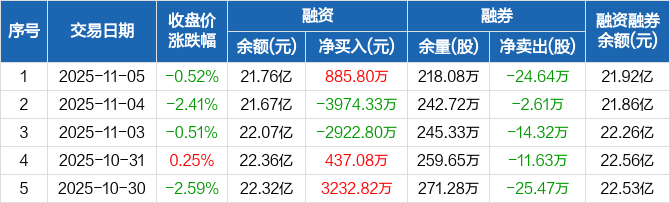 岩山科技:融资净买入885.8万元,融资余额21.76亿元(11-05)