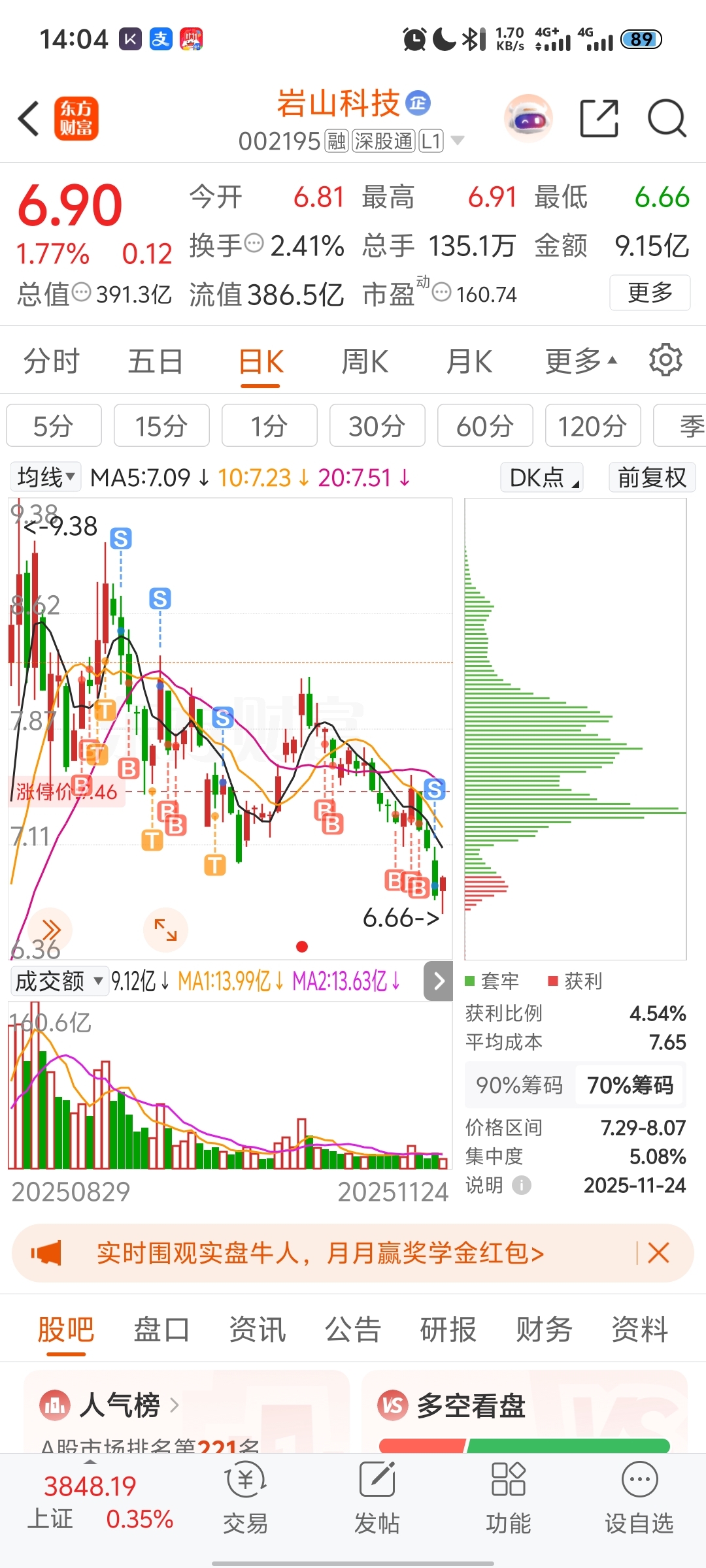 $岩山科技(SZ002195)$ 遭遇人生滑铁卢,割肉百分之三十几
