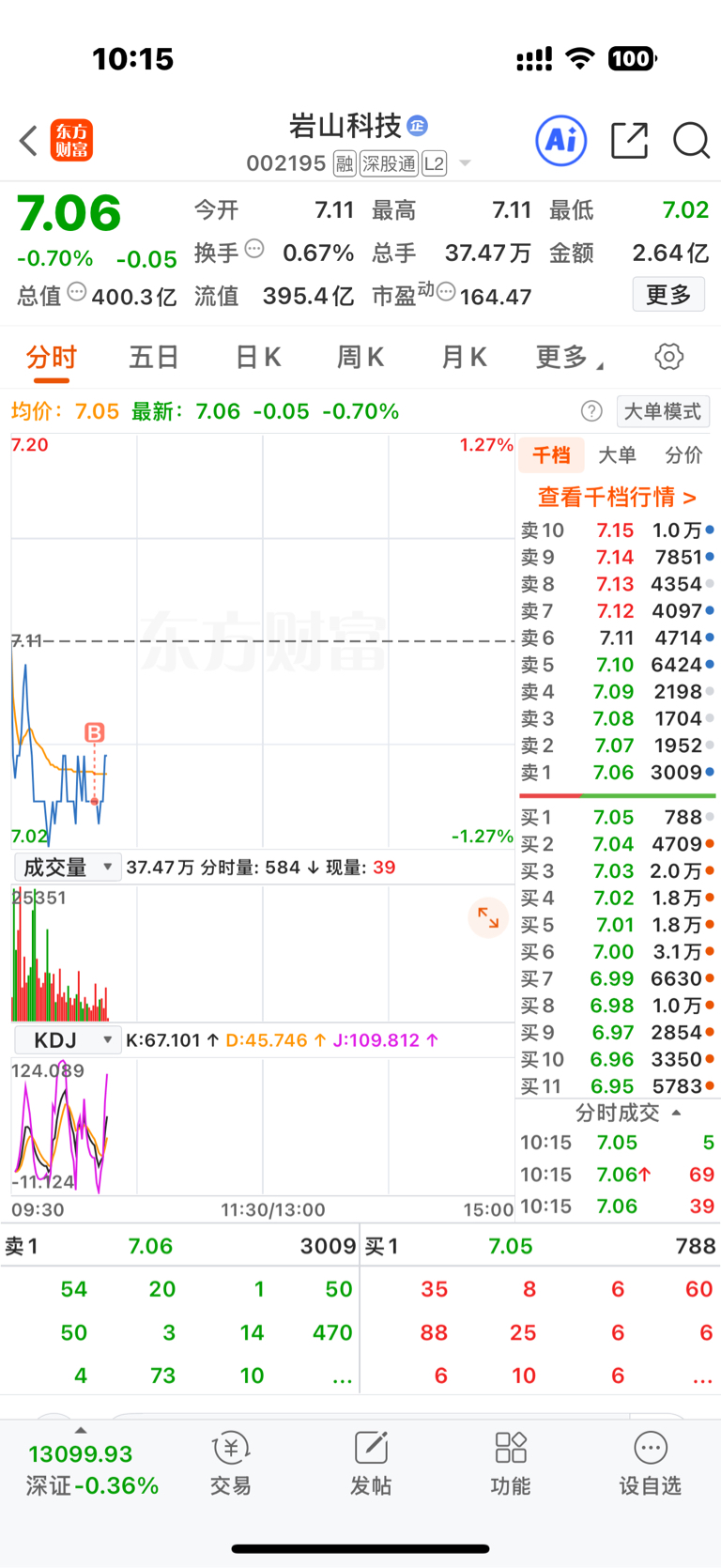 $岩山科技(SZ002195)$ 昨天7.14抛,今天7.04接,又T一毛钱