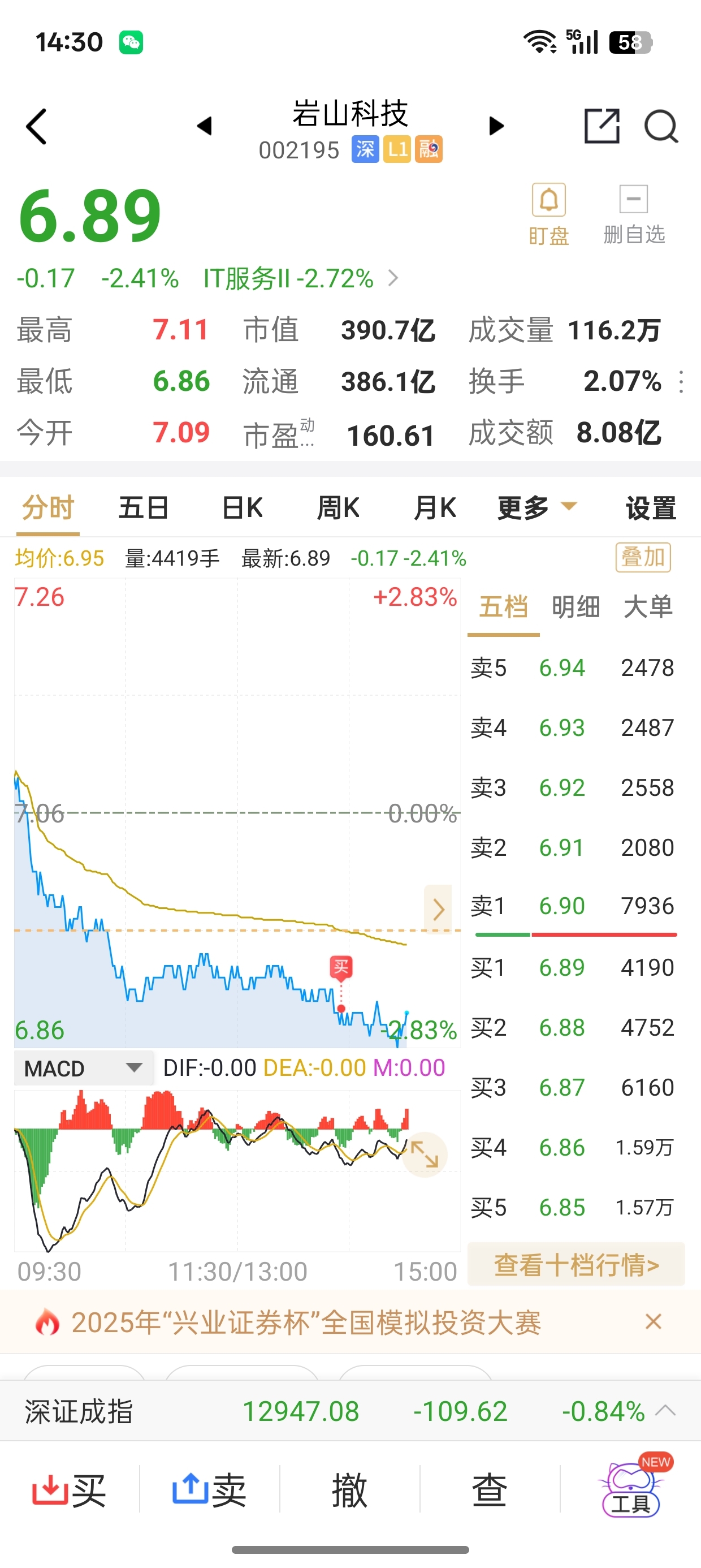 $岩山科技(SZ002195)$ 梭哈了,现在躺平了,一切交给了大盘……