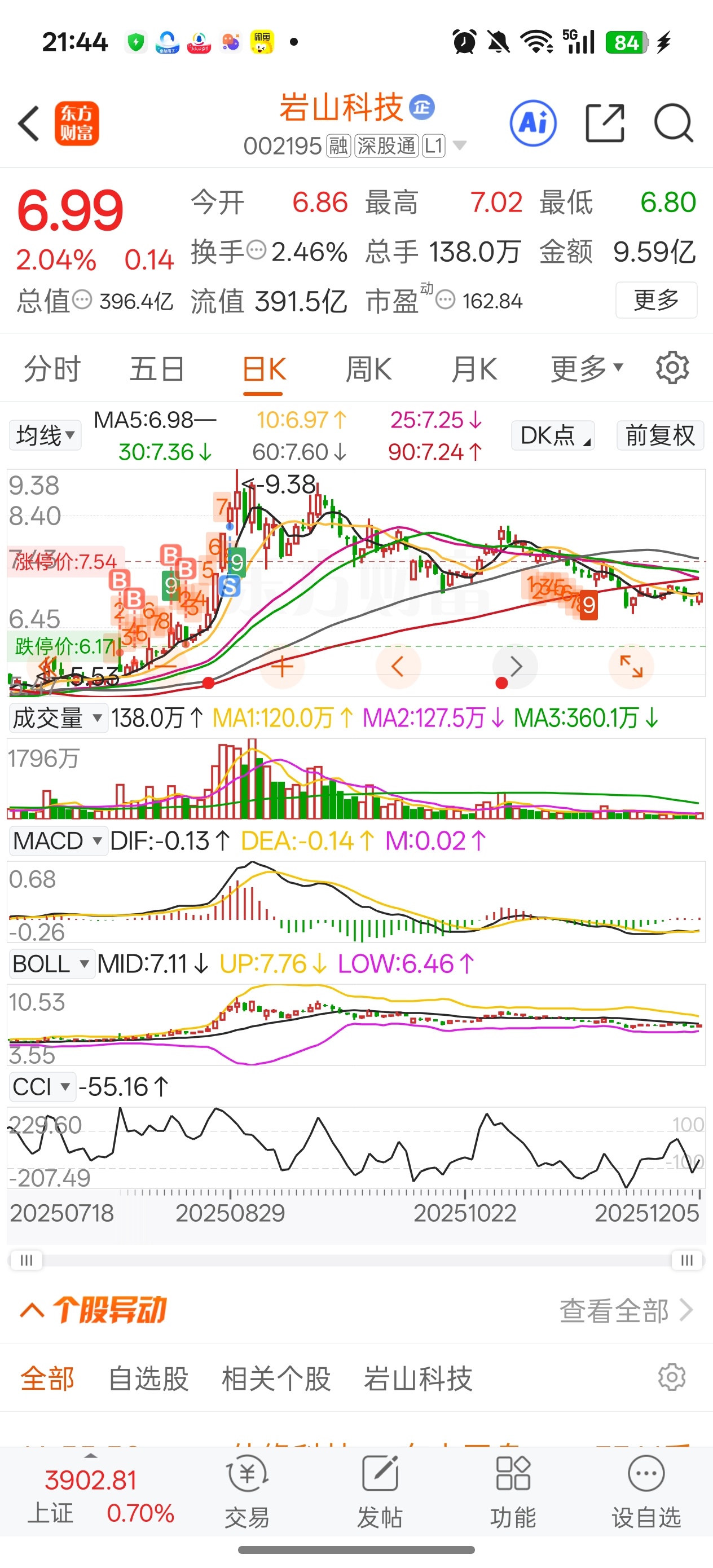 $岩山科技(SZ002195)$ 我又准备回来了