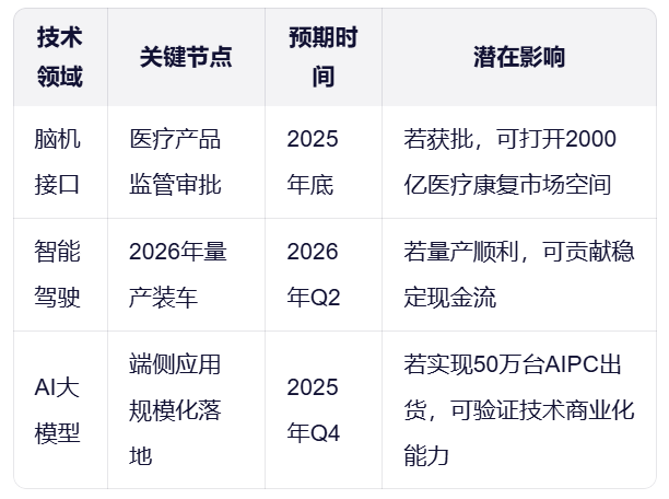 岩山科技的投资价值主要体现在技术布局与现金储备上,但需警惕高估值与主业亏损的矛盾。若2025年底脑机接口医疗产品获批、2026年智能驾驶量产装车量达标、AI大模型在低算力场景落地,估值体系将从"概念溢价"转向"业绩兑现",中长线配置价值凸显。
