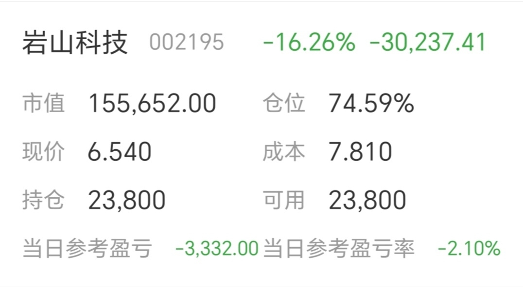 $岩山科技(SZ002195)$ 这是我买的岩山科技,悲哀不!