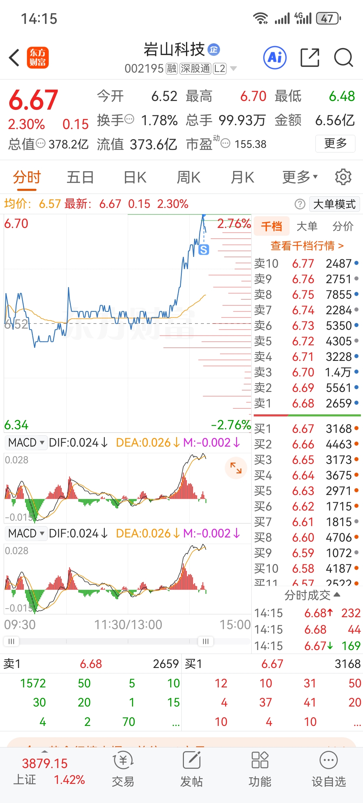 $岩山科技(SZ002195)$ 感谢主力给了跑的机会,亏了3个点还能接受
