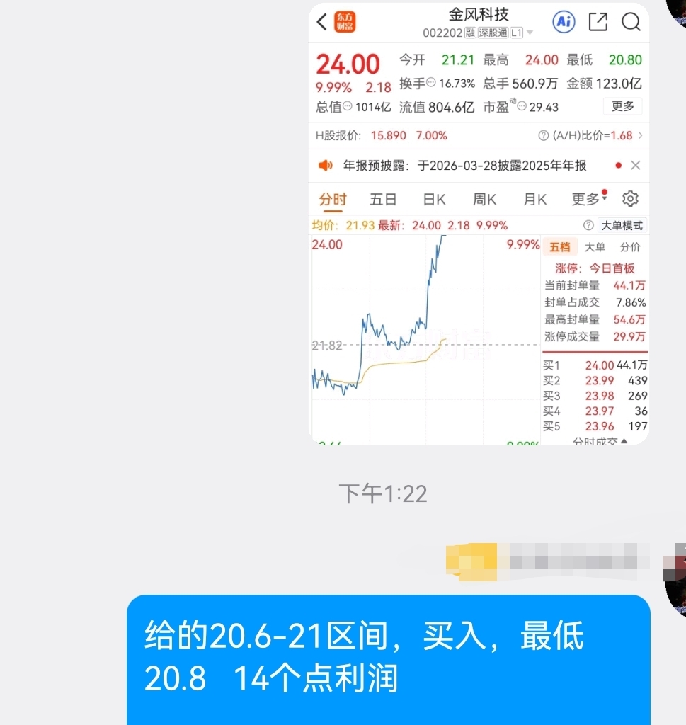 20.6-21区间买入金风科技!实际最低20.8 !14个点大肉!超级大长腿!舒服了!