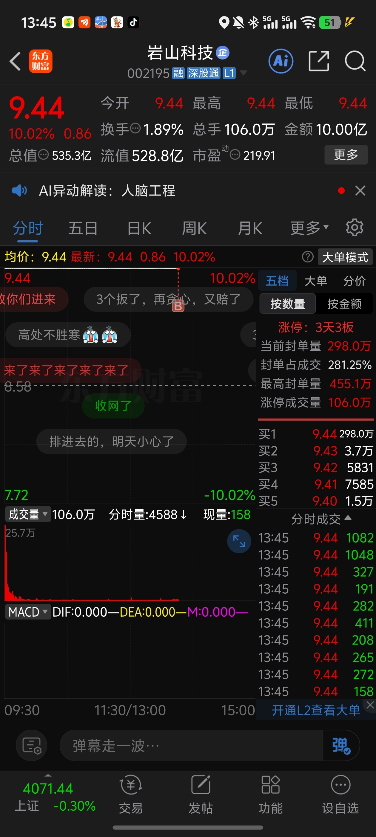 $岩山科技(SZ002195)$ 排了两天 终于进去了哈哈哈哈哈