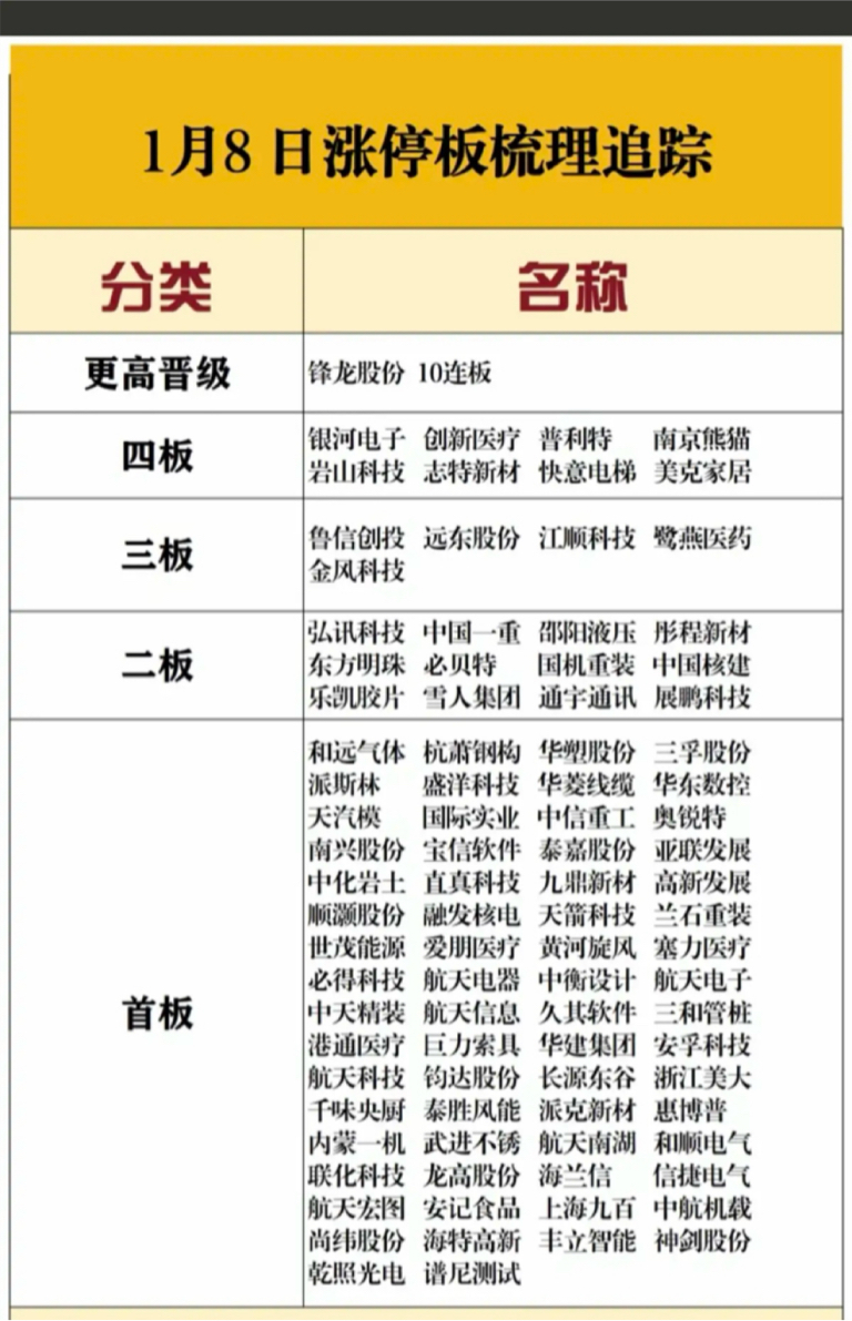 1.08周四涨停板股票:复盘总结!10连板锋龙股份4连板银河电子创新医疗南京熊猫
