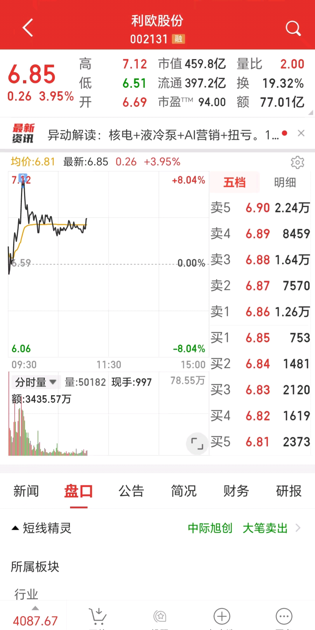 $岩山科技(SZ002195)$ $利欧股份(SZ002131)$ $雷科防务(SZ002413)$ 出了利欧进了岩山,开盘竞价进了雷科,下午减仓平潭,卖点还行,但昨天蓝色光标高抛卖飞了,今天还大涨了