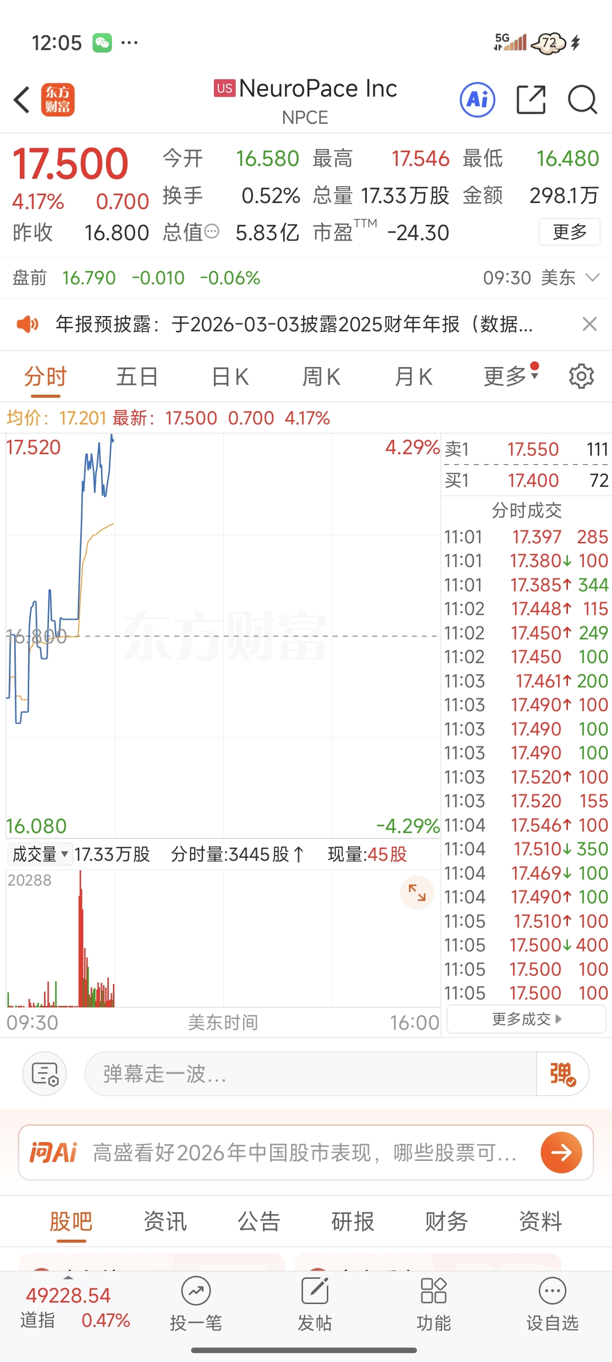 看看正经的脑机公司吧,再说那个卖中药的杂毛,三天股价翻倍了,现在跌十几个点不正常