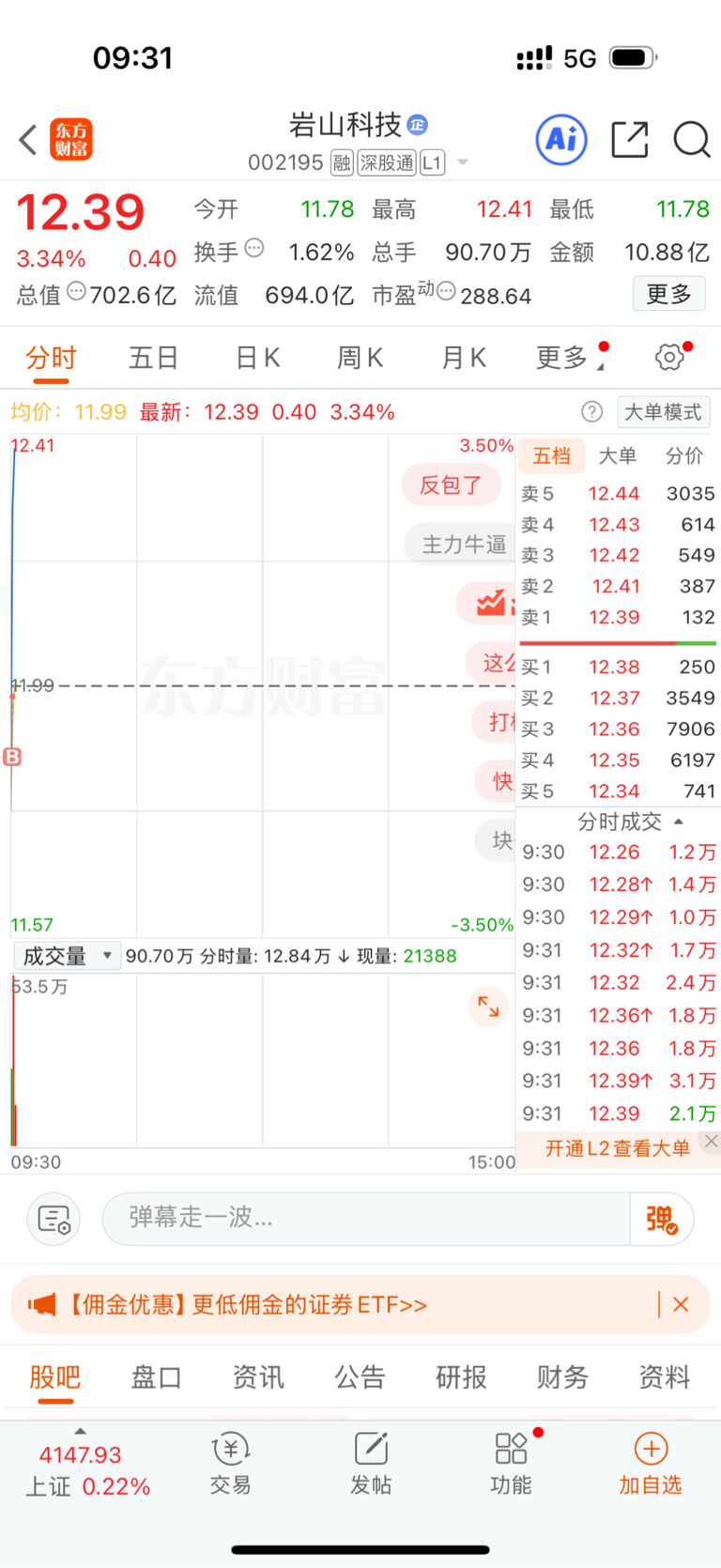 开盘选择介入$岩山科技(SZ002195)$ #强势机会# #实盘记录# #投资干货# #投资随笔#