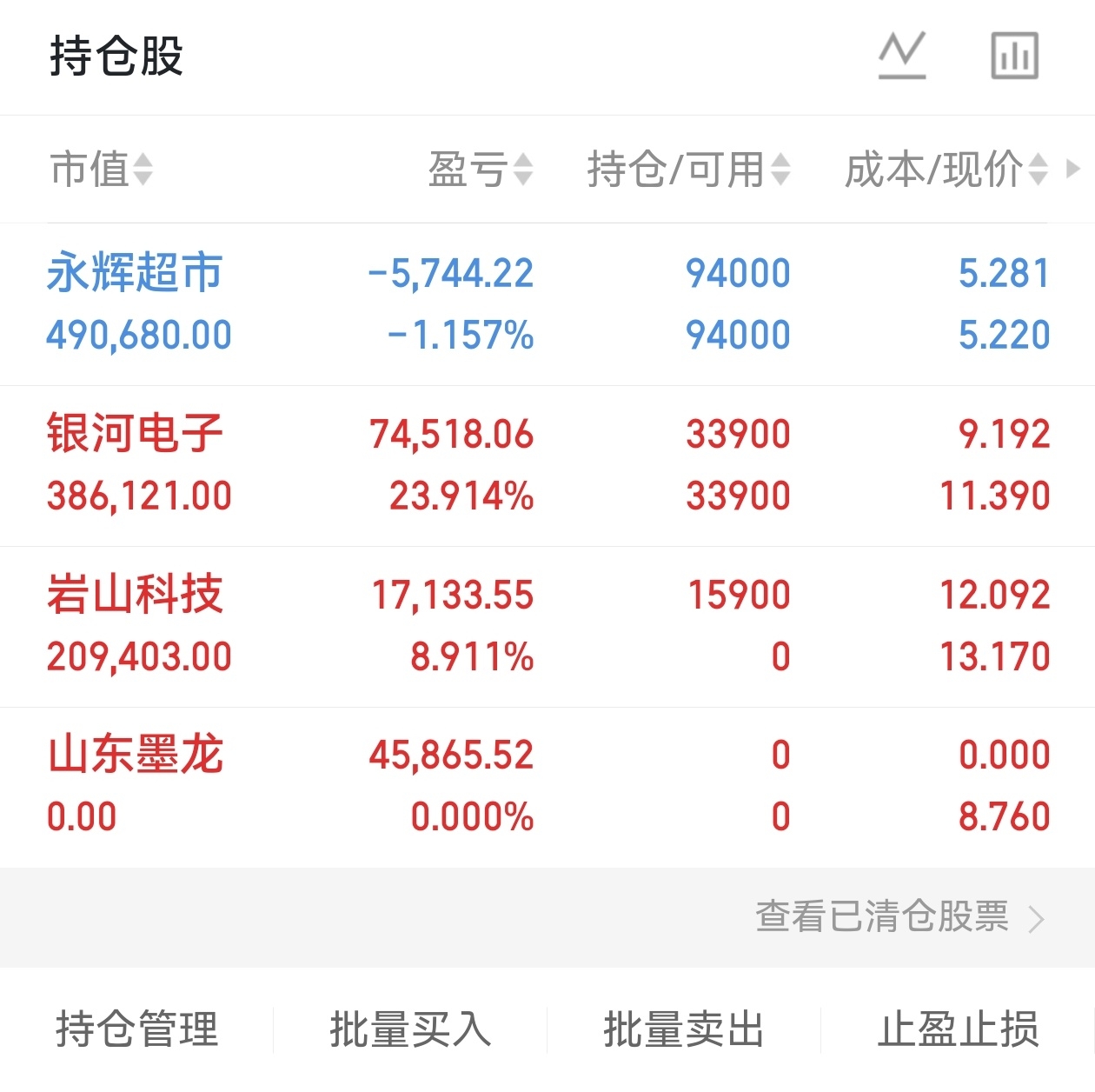山东墨L获利卖出银河电Z板上减仓岩山科J也是吃肉的趋势永辉超S继续耐心持有