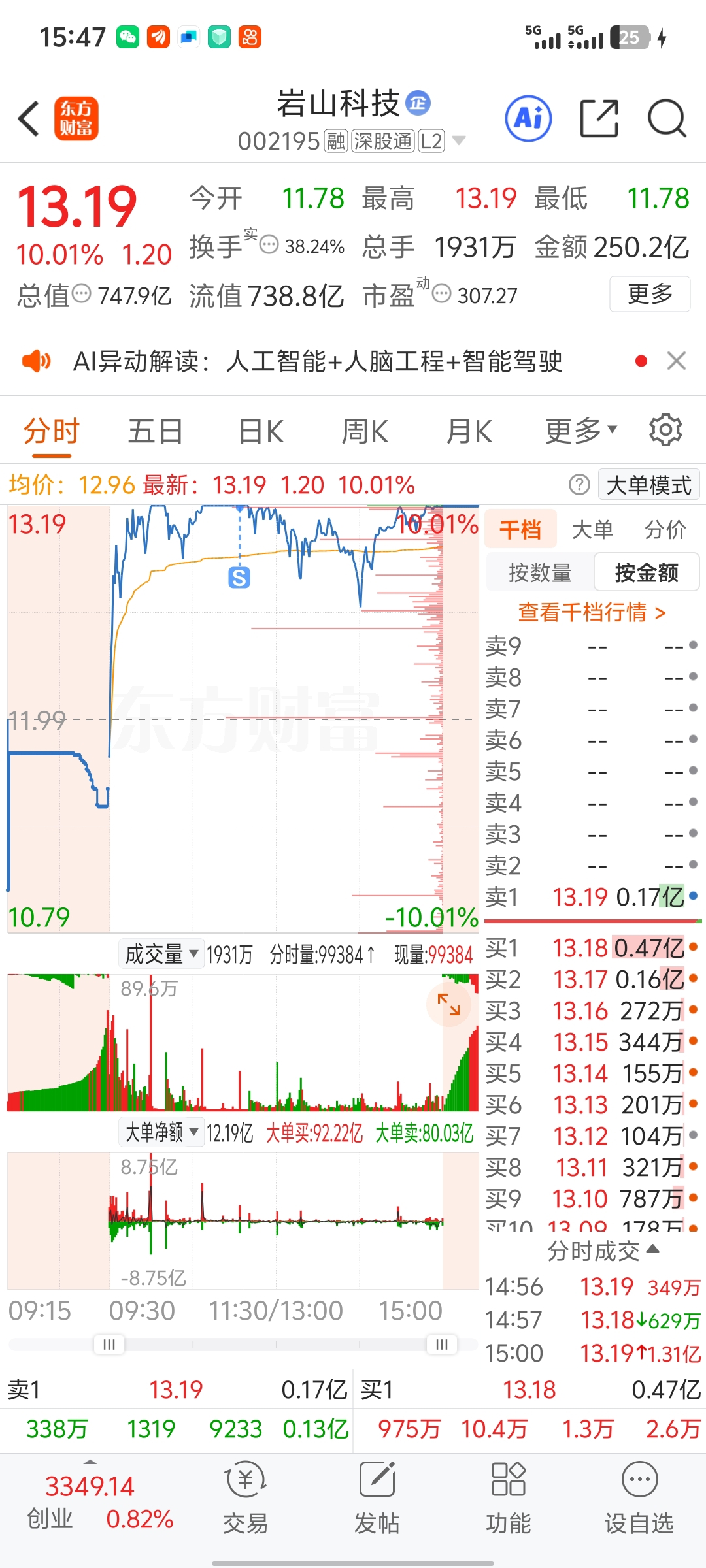 $岩山科技(SZ002195)$ 第二次破板就都出了,太高了!