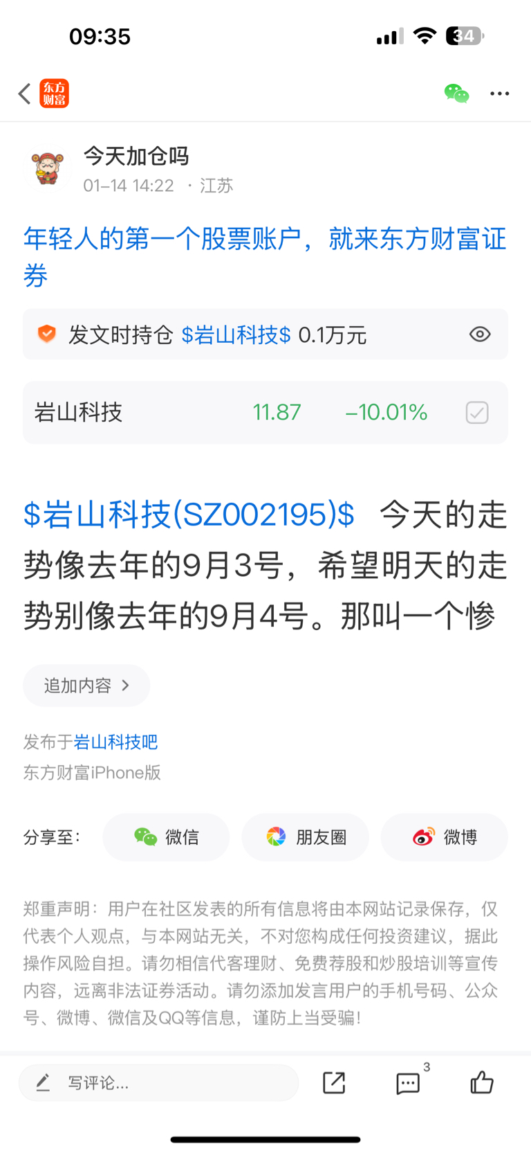 温馨提示: 1.根据《证券法》规定,禁止编造、传播虚假信息或者误导性信息,扰乱证券市场;2.用户在本社区发表的所有资料、言论等仅代表个人观点,与本网站立场无关,不对您构成任何投资建议。用户应基于自己的独立判断,自行决定证券投资并承担相应风险。《东方财富社区管理规定》