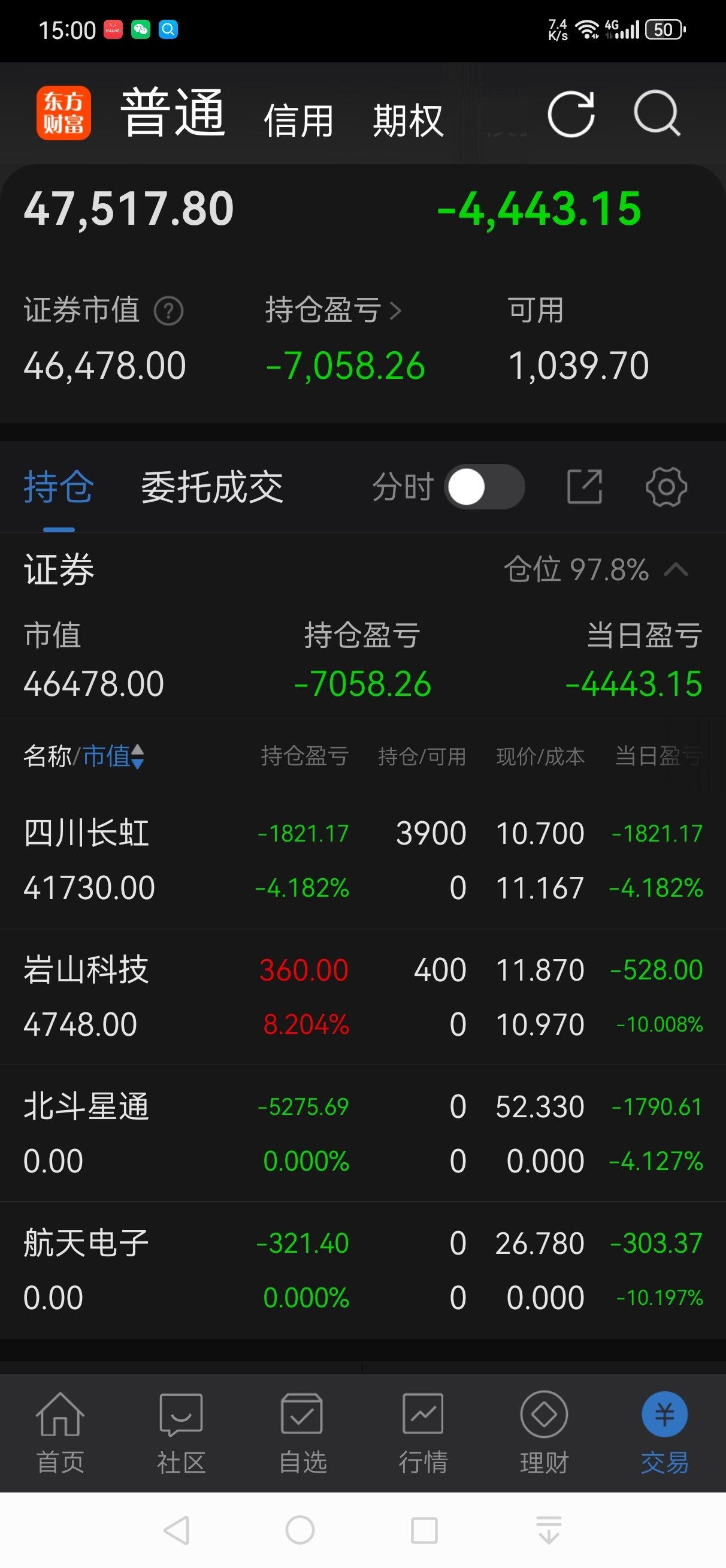 今日卖掉:北斗星通,航天电子