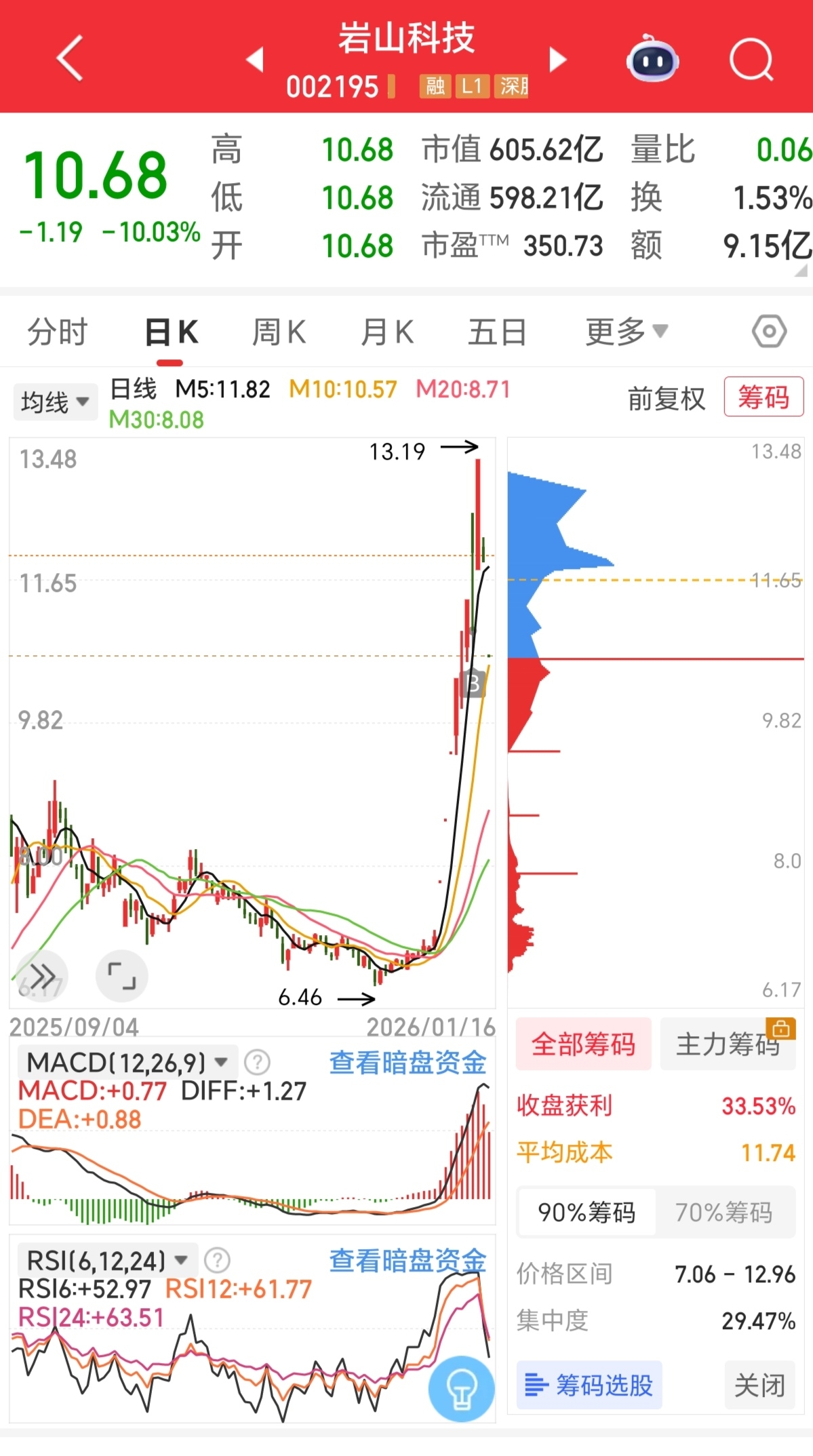 $岩山科技(SZ002195)$ 话说封单70亿为什么筹码还能跑这么多啊?都快跑的差不多了