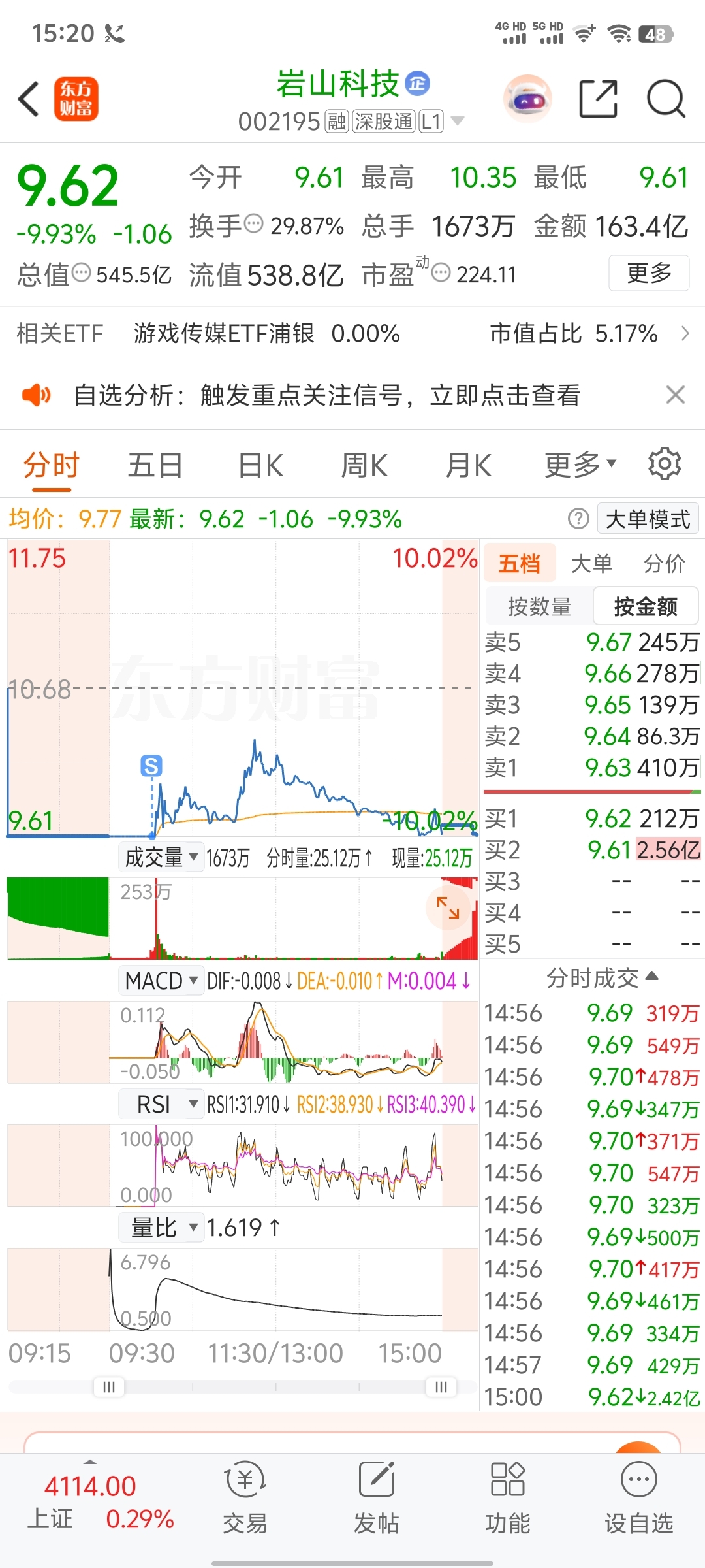 $岩山科技(SZ002195)$ 阿弥陀佛,善哉善哉!终于出来了,活埋了三天,亏惨了,应该又要回到两块了吧!领导不让向上,向下三天就可以,没异常