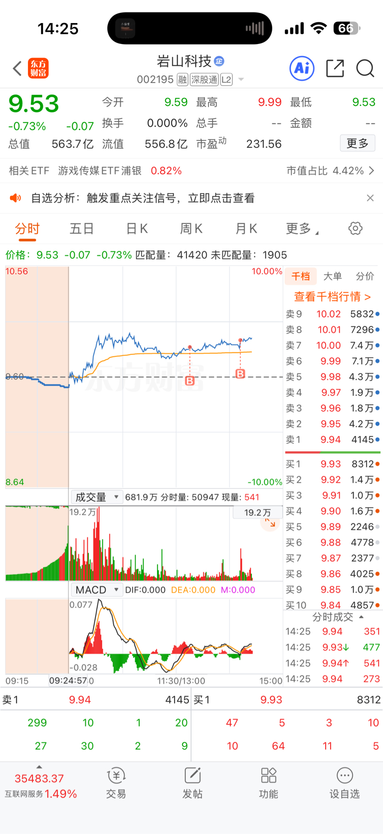 $岩山科技(SZ002195)$ 拿稳啊 主力尾买那么多 明天要高开高走了