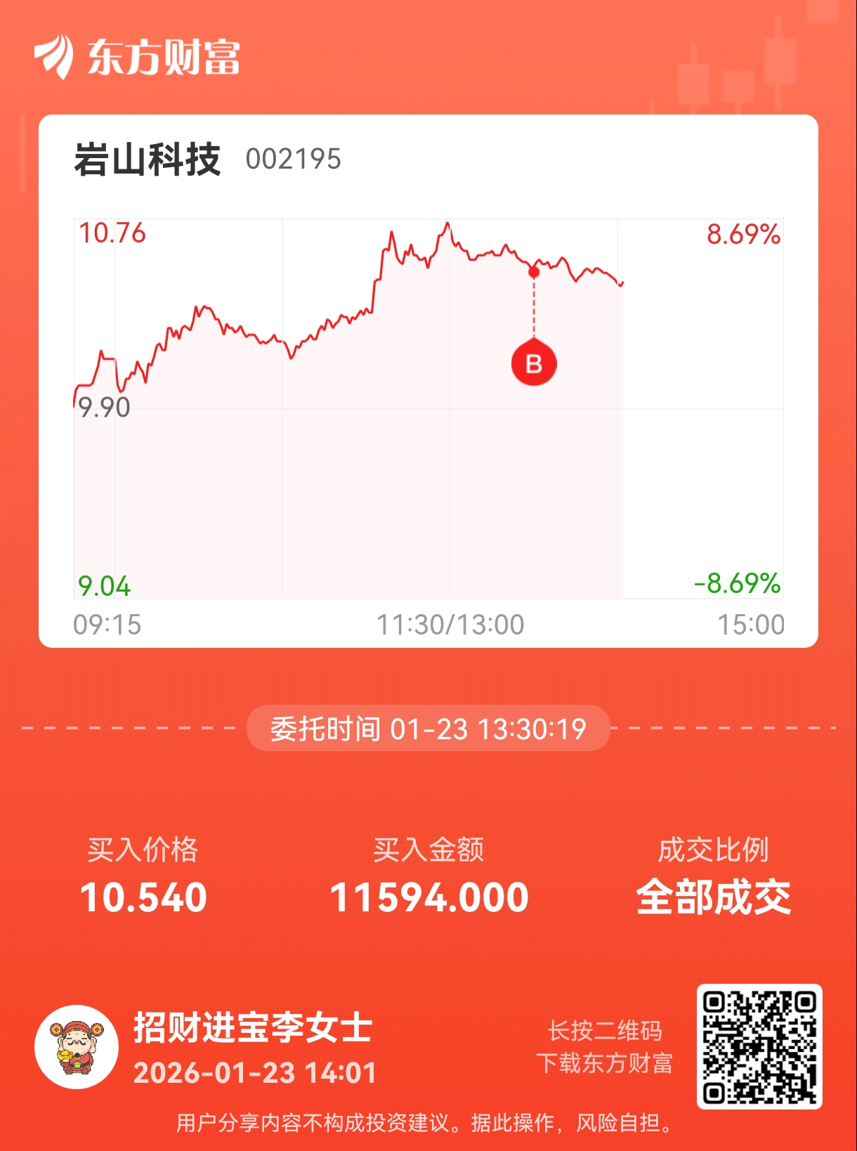 温馨提示: 1.根据《证券法》规定,禁止编造、传播虚假信息或者误导性信息,扰乱证券市场;2.用户在本社区发表的所有资料、言论等仅代表个人观点,与本网站立场无关,不对您构成任何投资建议。用户应基于自己的独立判断,自行决定证券投资并承担相应风险。《东方财富社区管理规定》