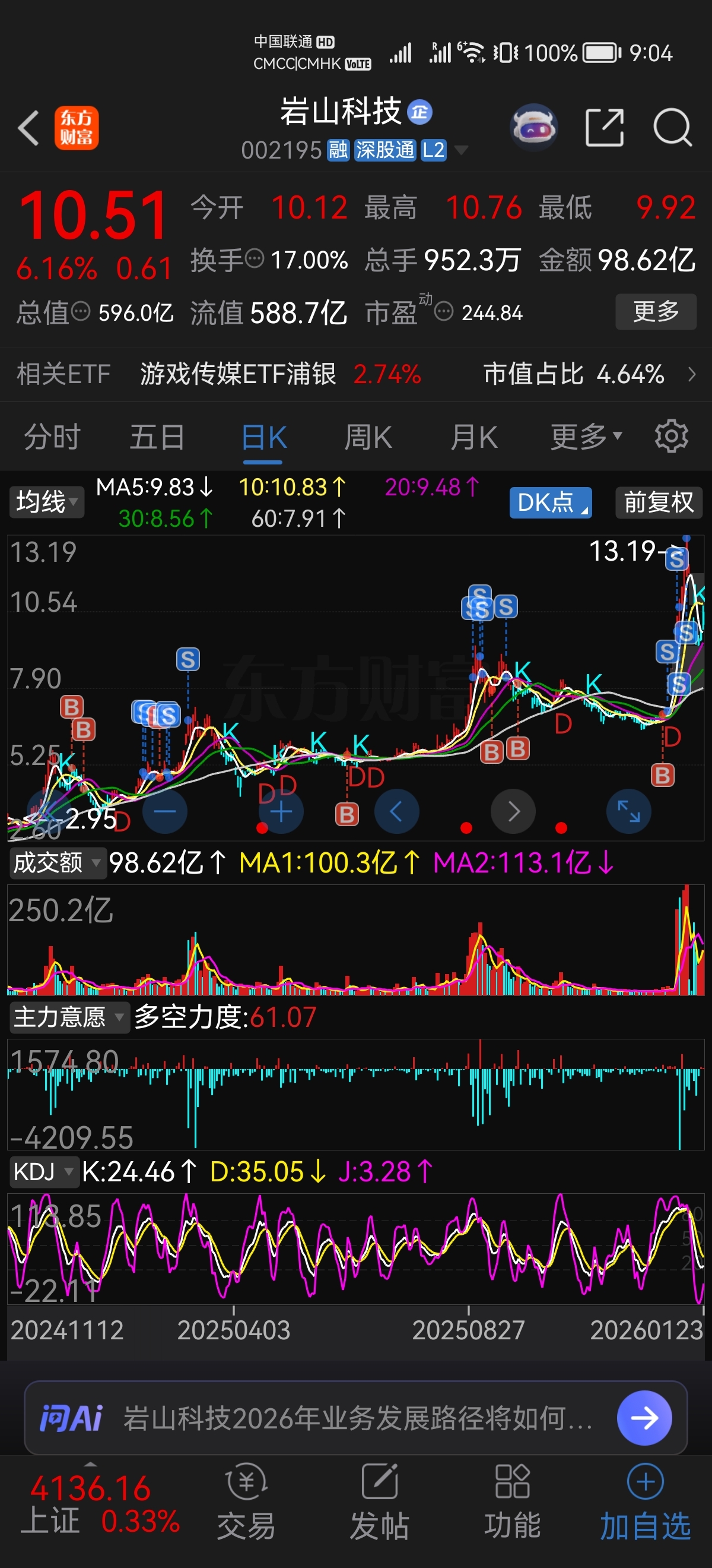 岩山科技,主要跟的应该是脑机接口概念,曾经多次看好,在此股上面,也赚了一点钱,现