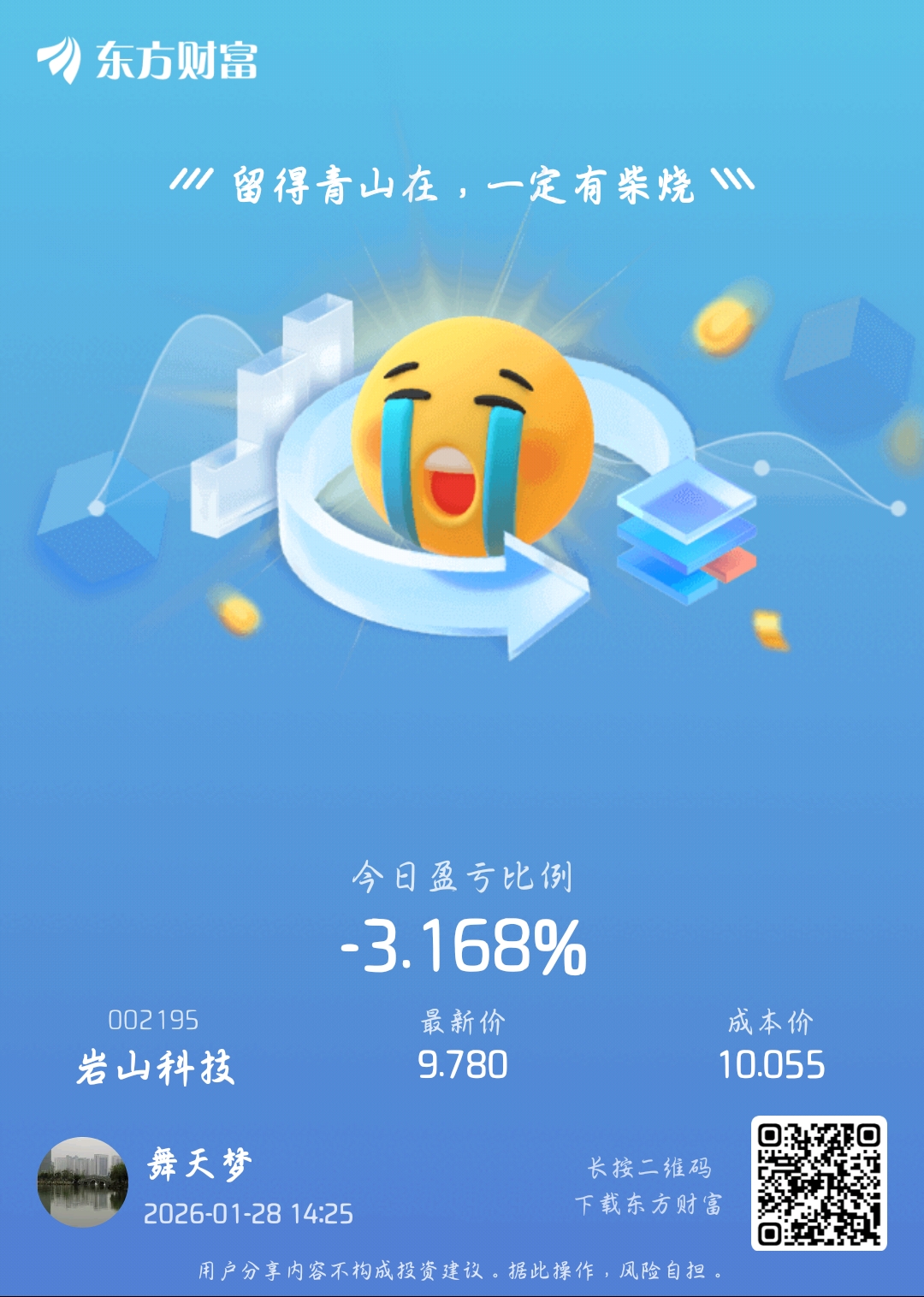 温馨提示: 1.根据《证券法》规定,禁止编造、传播虚假信息或者误导性信息,扰乱证券市场;2.用户在本社区发表的所有资料、言论等仅代表个人观点,与本网站立场无关,不对您构成任何投资建议。用户应基于自己的独立判断,自行决定证券投资并承担相应风险。《东方财富社区管理规定》