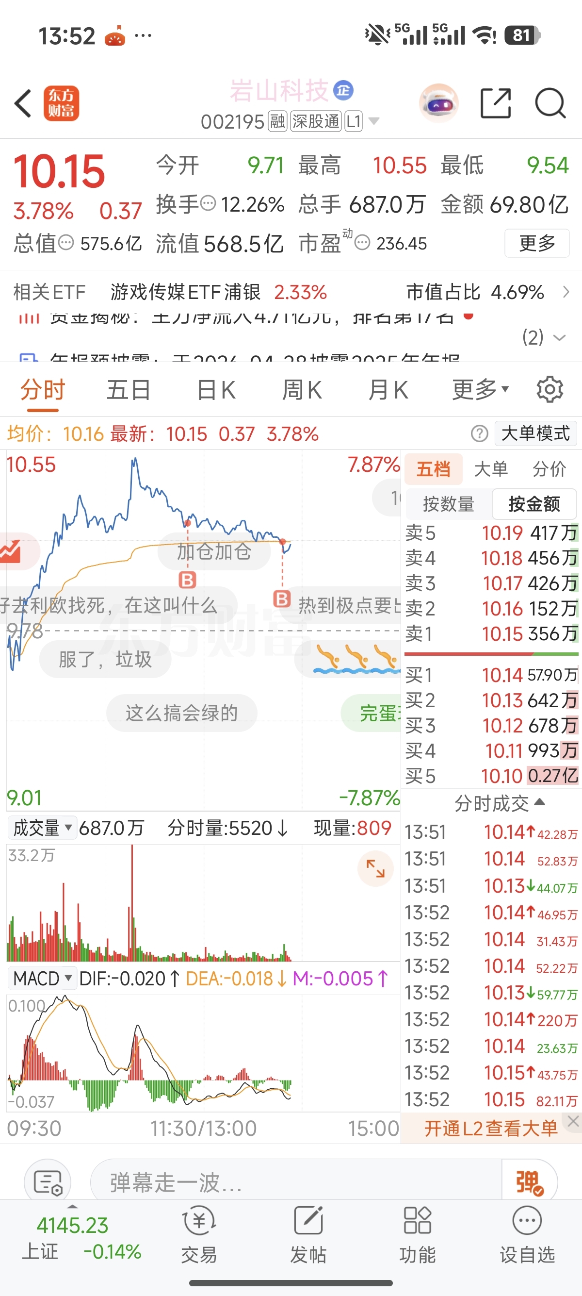 $岩山科技(SZ002195)$ 子弹打光了,怎么办,大盘涨你不跟,跳水你就跟,t都t不出来