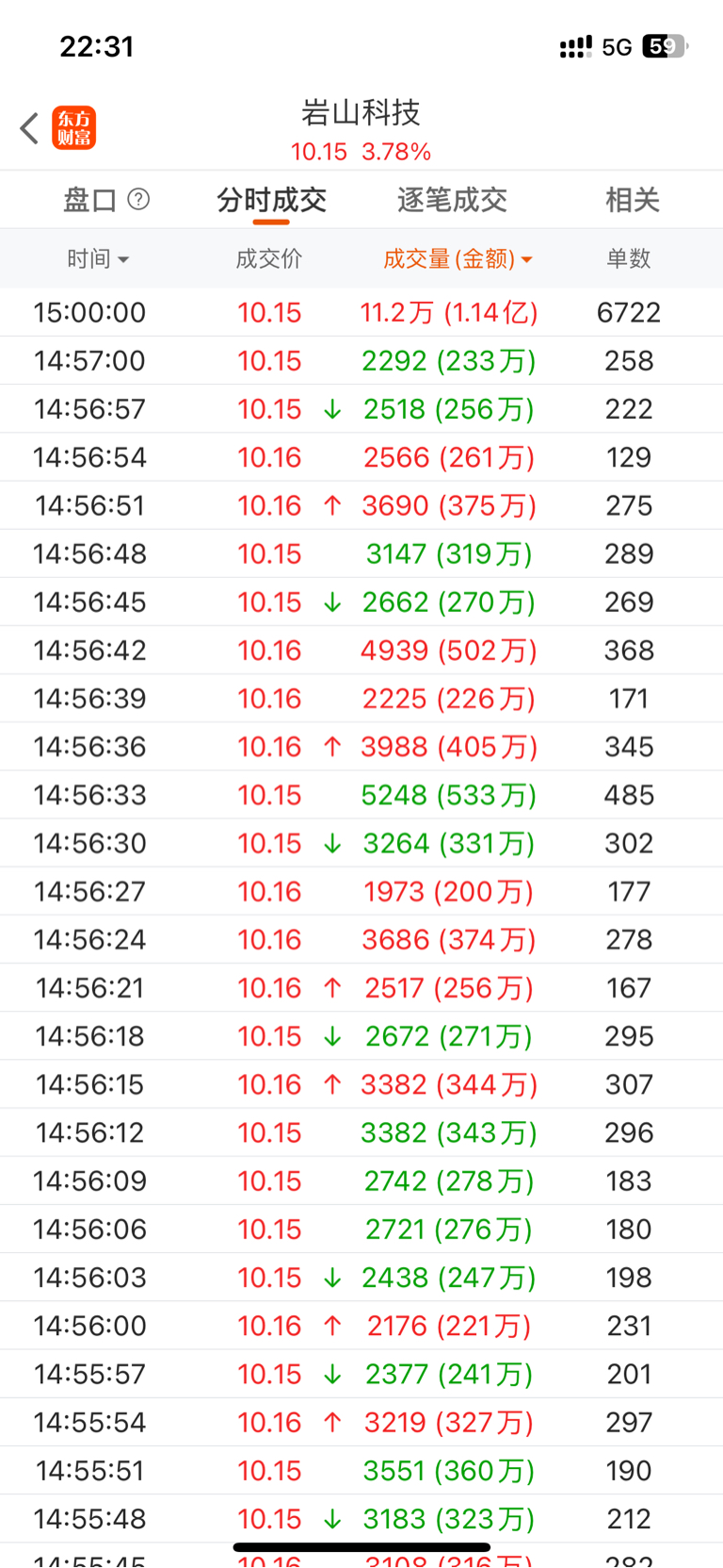 $岩山科技(SZ002195)$ 15:00分成交,明天涨停