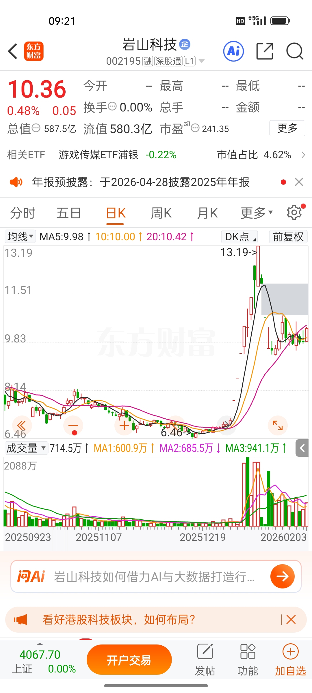 $岩山科技(SZ002195)$ ,逢低关注