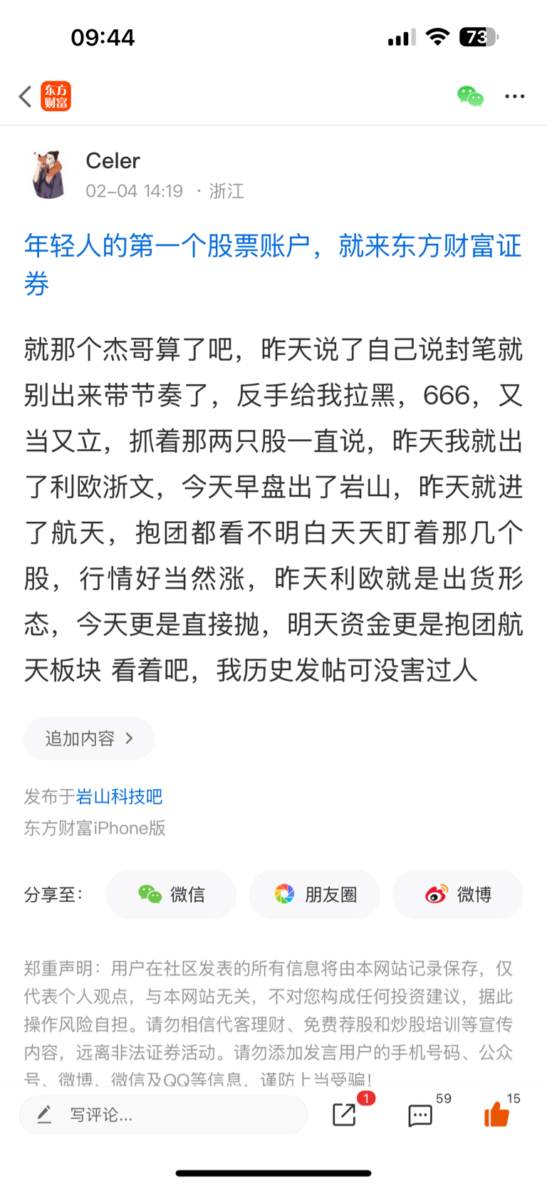 温馨提示: 1.根据《证券法》规定,禁止编造、传播虚假信息或者误导性信息,扰乱证券市场;2.用户在本社区发表的所有资料、言论等仅代表个人观点,与本网站立场无关,不对您构成任何投资建议。用户应基于自己的独立判断,自行决定证券投资并承担相应风险。《东方财富社区管理规定》