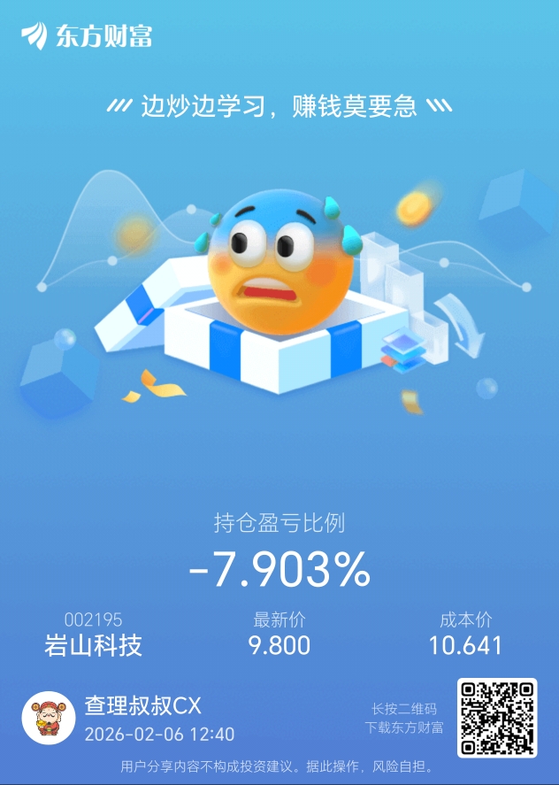 温馨提示: 1.根据《证券法》规定,禁止编造、传播虚假信息或者误导性信息,扰乱证券市场;2.用户在本社区发表的所有资料、言论等仅代表个人观点,与本网站立场无关,不对您构成任何投资建议。用户应基于自己的独立判断,自行决定证券投资并承担相应风险。《东方财富社区管理规定》