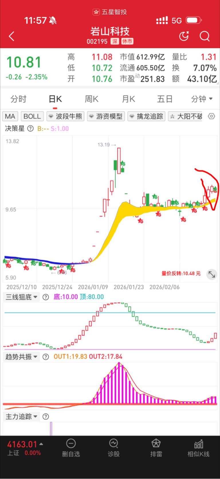 $岩山科技(SZ002195)$ 提示今天卖点,下降趋势,速卖
