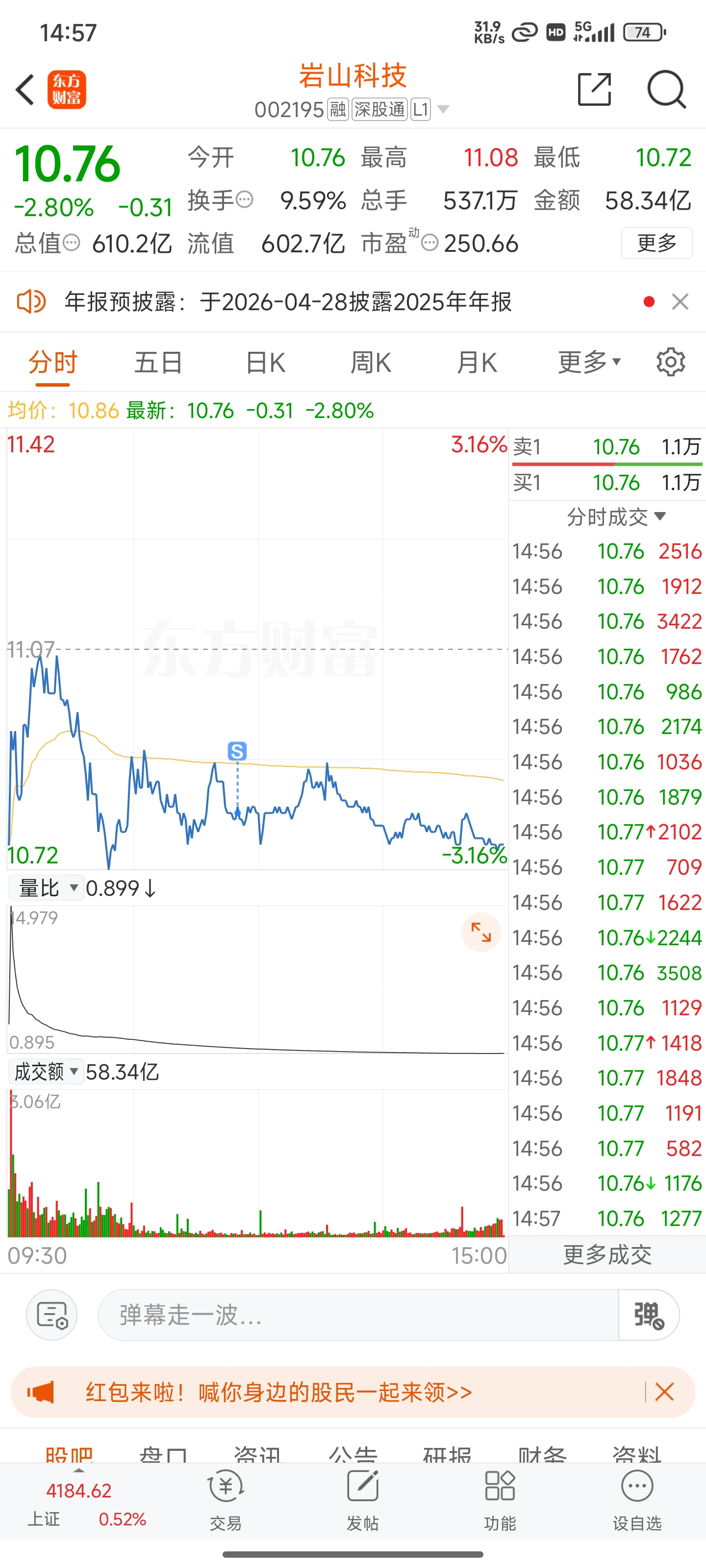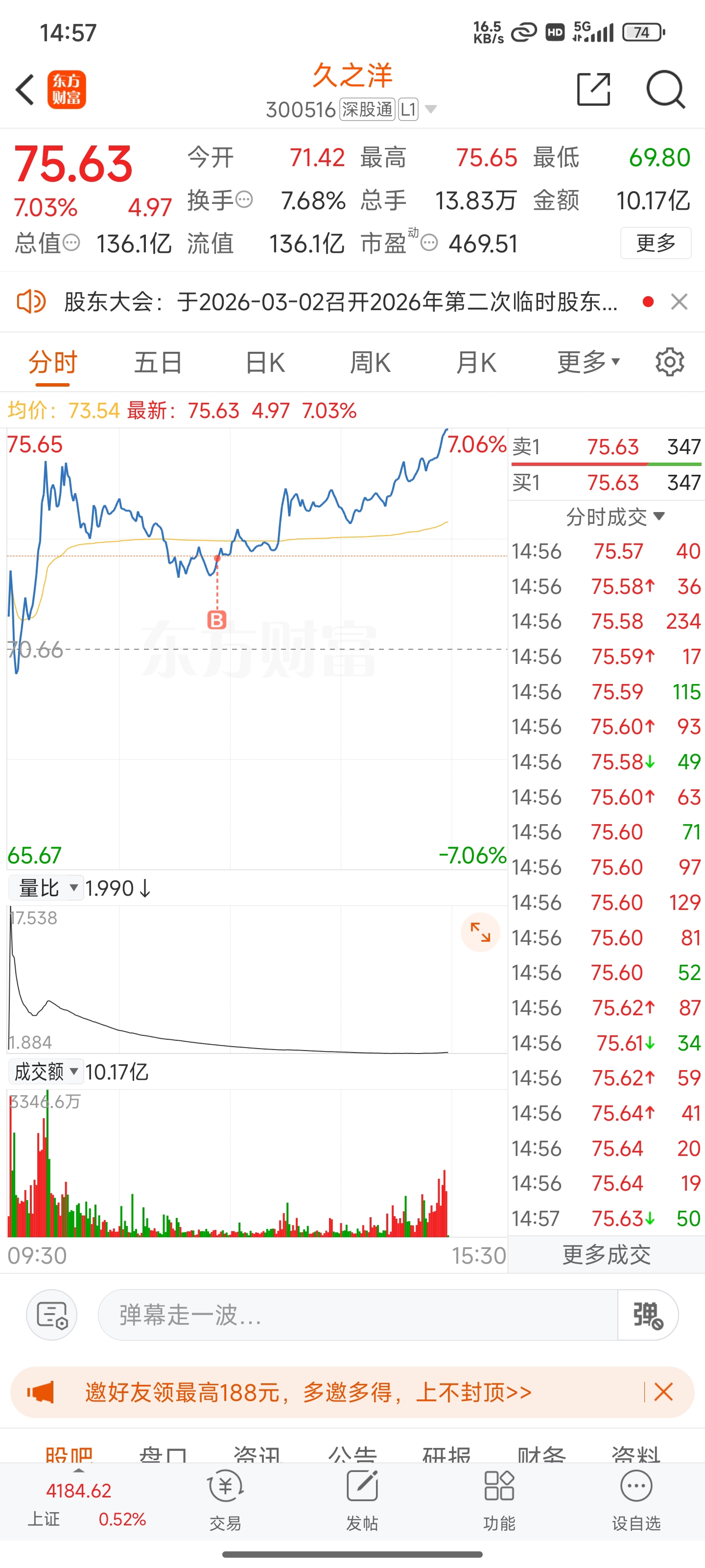 $岩山科技(SZ002195)$ $银河电子(SZ002519)$ $久之洋(SZ300516)$ 前两只高点没卖,气的低点卖了,可能明天还会拉,转到久之洋,给力!