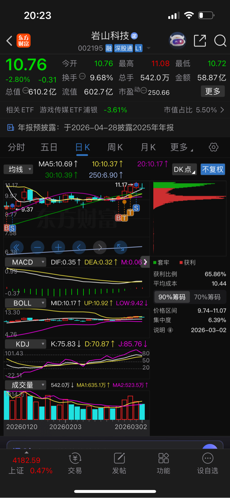 上周五卖了岩山科技入了雷科防务,等到位了我再来。