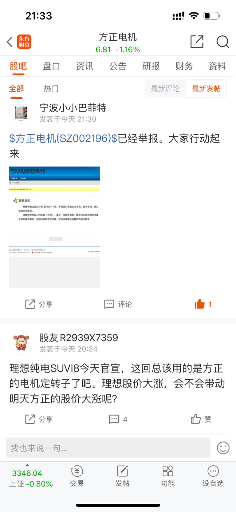 温馨提示: 1.根据《证券法》规定,禁止编造、传播虚假信息或者误导性信息,扰乱证券市场;2.用户在本社区发表的所有资料、言论等仅代表个人观点,与本网站立场无关,不对您构成任何投资建议。用户应基于自己的独立判断,自行决定证券投资并承担相应风险。《东方财富社区管理规定》