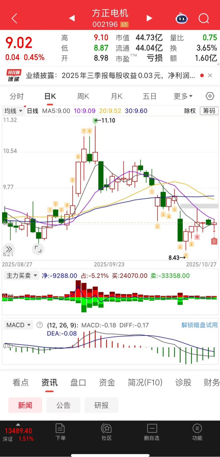 $方正电机(SZ002196)$ 就这一只 你把握了吗?#收盘点评# #实盘记录# #强势机会#